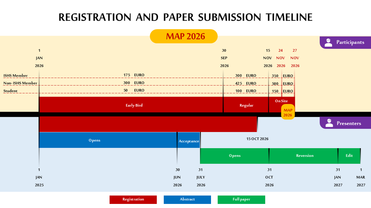 - Presenting authors of abstracts accepted for presentation (both oral/poster) must register for the symposium by October 15, 2026. Failing to register for the symposium will result in your abstract being withdrawn from the symposium program and your manuscript being withdrawn from the Acta Horticulturae symposium proceedings.