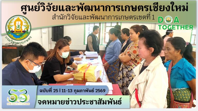ข่าวประชาสัมพันธ์ ลงพื้นที่ติดตาม–ให้คำแนะนำป้องกันศัตรูพืช เกษตรกรโครงการทฤษฎีใหม่ จ.เชียงใหม่13 กุมภาพันธ์ 2569