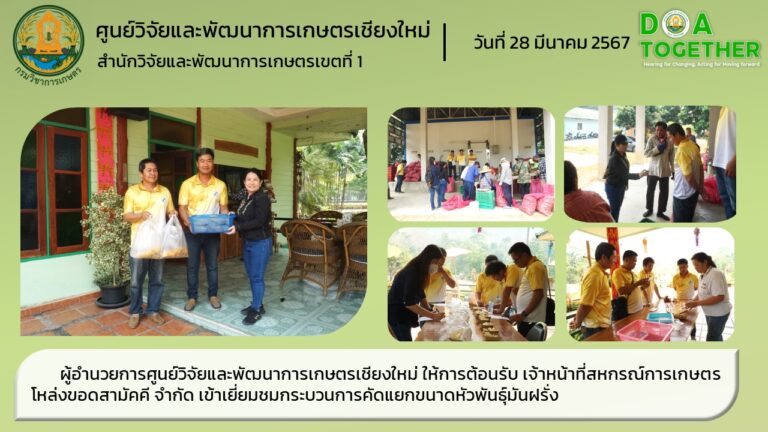 ข่าวประชาสัมพันธ์ ผู้อำนวยการศูนย์วิจัยและพัฒนาการเกษตรเชียงใหม่ ให้การต้อนรับ เจ้าหน้าที่สหกรณ์การเกษตรโหล่งขอดสามัคคี จำกัด เข้าเยี่ยมชมกระบวนการคัดแยกขนาดหัวพันธุ์มันฝรั่ง28 มีนาคม 256722 ธันวาคม 2024
