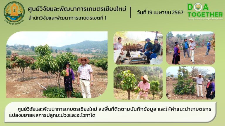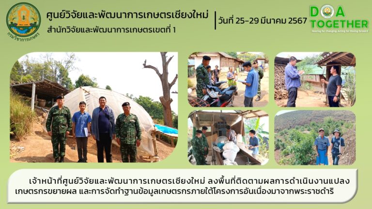 ข่าวประชาสัมพันธ์ เจ้าหน้าที่ศูนย์วิจัยและพัฒนาการเกษตรเชียงใหม่ ลงพื้นที่ติดตามผลการดำเนินงานแปลงเกษตรกรขยายผล และการจัดทำฐานข้อมูลเกษตรกรภายใต้โครงการอันเนื่องมาจากพระราชดำริ29 มีนาคม 256722 ธันวาคม 2024