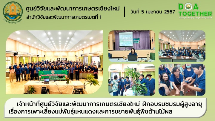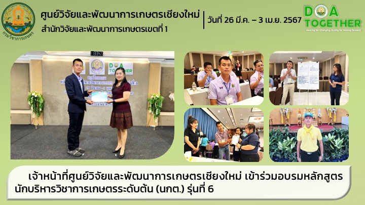 ข่าวประชาสัมพันธ์ เจ้าหน้าที่ศูนย์วิจัยและพัฒนาการเกษตรเชียงใหม่ เข้าร่วมอบรมหลักสูตร นักบริหารวิชาการเกษตรระดับต้น (นกต.) รุ่นที่ 63 เมษายน 256722 ธันวาคม 2024