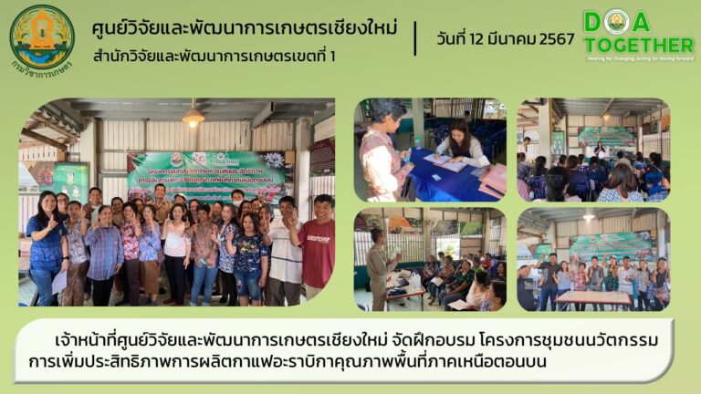 ข่าวประชาสัมพันธ์ เจ้าหน้าที่ศูนย์วิจัยและพัฒนาการเกษตรเชียงใหม่ จัดฝึกอบรม โครงการชุมชนนวัตกรรมการเพิ่มประสิทธิภาพการผลิตกาแฟอะราบิกาคุณภาพพื้นที่ภาคเหนือตอนบน12 มีนาคม 256722 ธันวาคม 2024