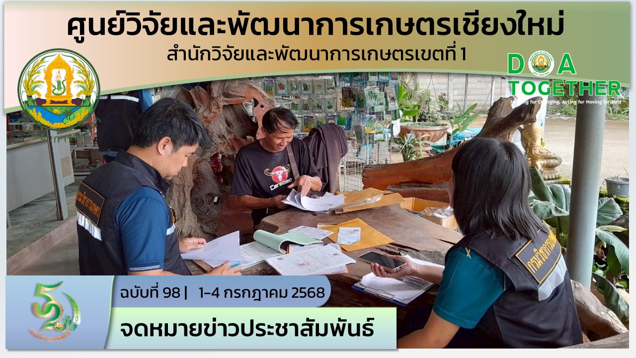 วันที่ 1-4 กรกฎาคม 2568 กลุ่มงานบริการวิชาการ งานควบคุมตามพระราชบัญญัติ ศูนย์วิจัยและพัฒนาการเกษตรเชียงใหม่ ลงพื้นที่ตรวจร้านจำหน่ายปัจจัยการผลิตทางการเกษตรพื้นที่ อ.เวียงแหง อ.เชียงดาว อ.สันทรายอ.พร้าว อ.ไชยปราการ จ.เชียงใหม่