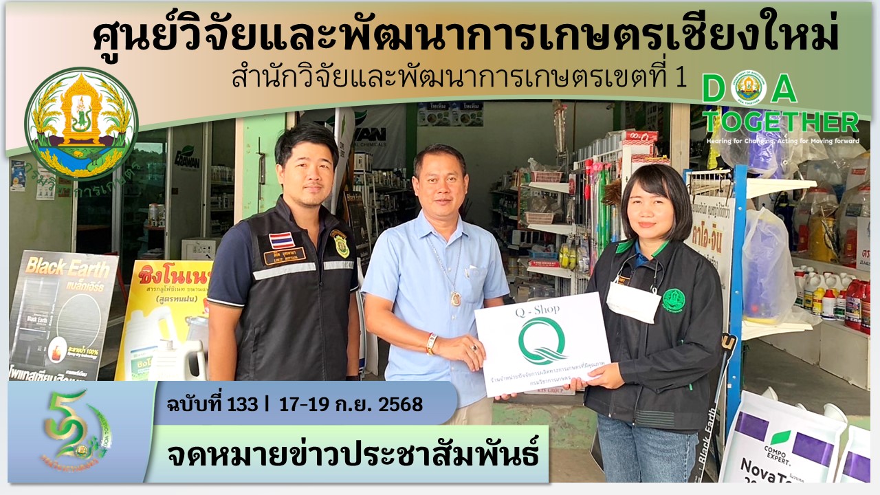 วันที่ 17-19 กันยายน 2568 กลุ่มงานบริการวิชาการ งานควบคุมตามพระราชบัญญัติ ศูนย์วิจัยและพัฒนาการเกษตรเชียงใหม่ดำเนินงาน ตรวจร้านจำหน่ายปัจจัยการผลิตทางการเกษตรและมอบสัญลักษณ์ร้านจำหน่ายปัจจัยการผลิตที่มีคุณภาพ Q-Shop พื้นที่ อ.ฝาง อ.แม่อาย จ.เชียงใหม่