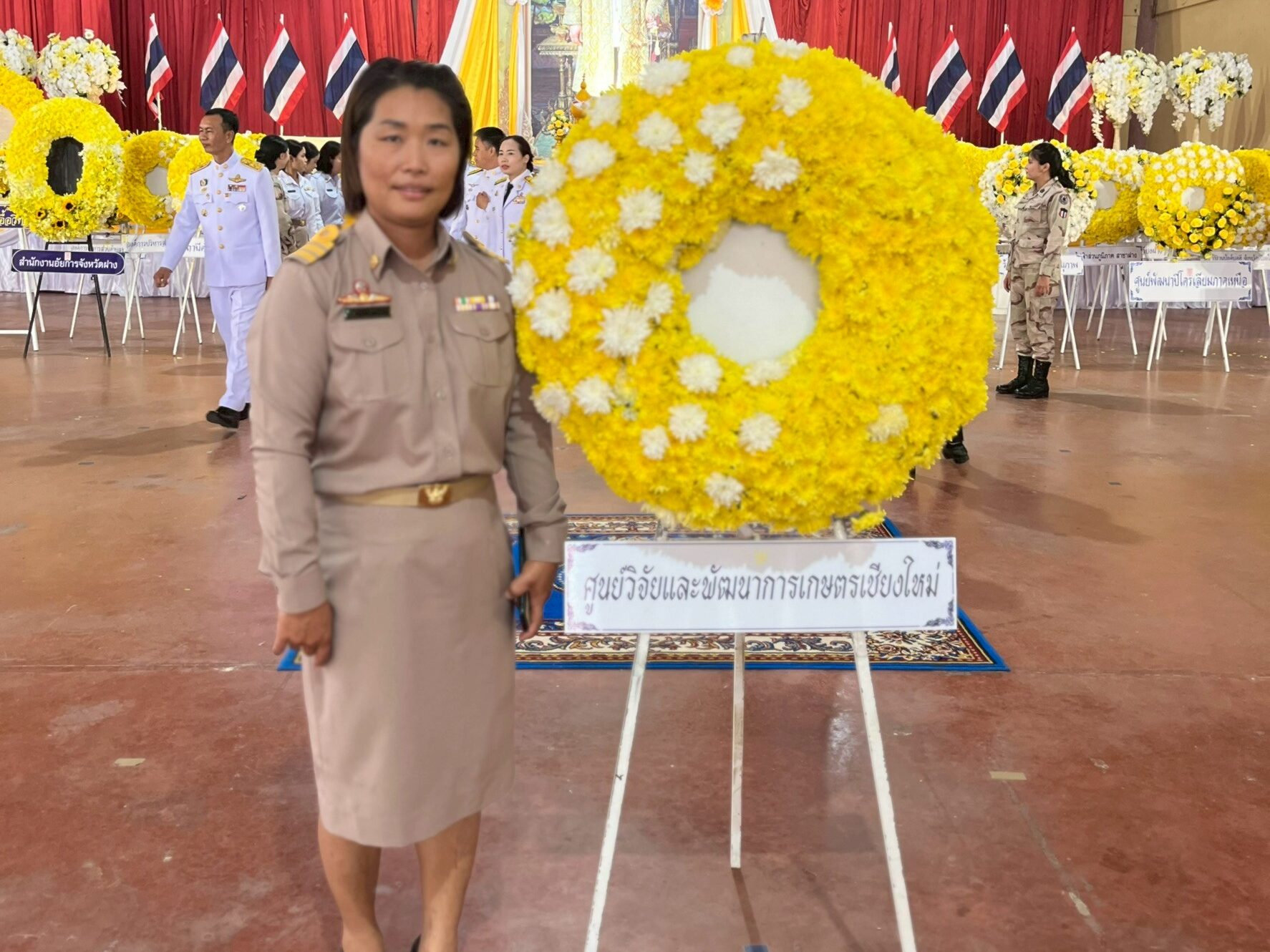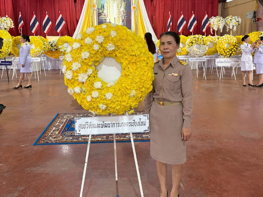 วันที่ 13 ตุลาคม 2568 นางสาวฉัตรสุดา เชิงอักษร ผู้อำนวยการศูนย์วิจัยและพัฒนาการเกษตรเชียงใหม่ นายศตวรรษ บุญศรี เจ้าพนักงานธุรการปฏิบัติงาน พร้อมด้วยเจ้าหน้าที่ ศวพ.เชียงใหม่ วางพวงมาลาถวายราชสักการะพระบรมราชานุสาวรีย์พระบาทสมเด็จพระบรมชนกาธิเบศร มหาภูมิพลอดุลยเดชมหาราช บรมนาถบพิตร เนื่องใน “วันนวมินทรมหาราช” พ.ศ. 2568 ด้วยความจงรักภักดีและสำนึกในพระมหากรุณาธิคุณ ณ อาคารมงคล ศาลเจ้าฝาง ต.เวียง อ.ฝาง จ.เชียงใหม่