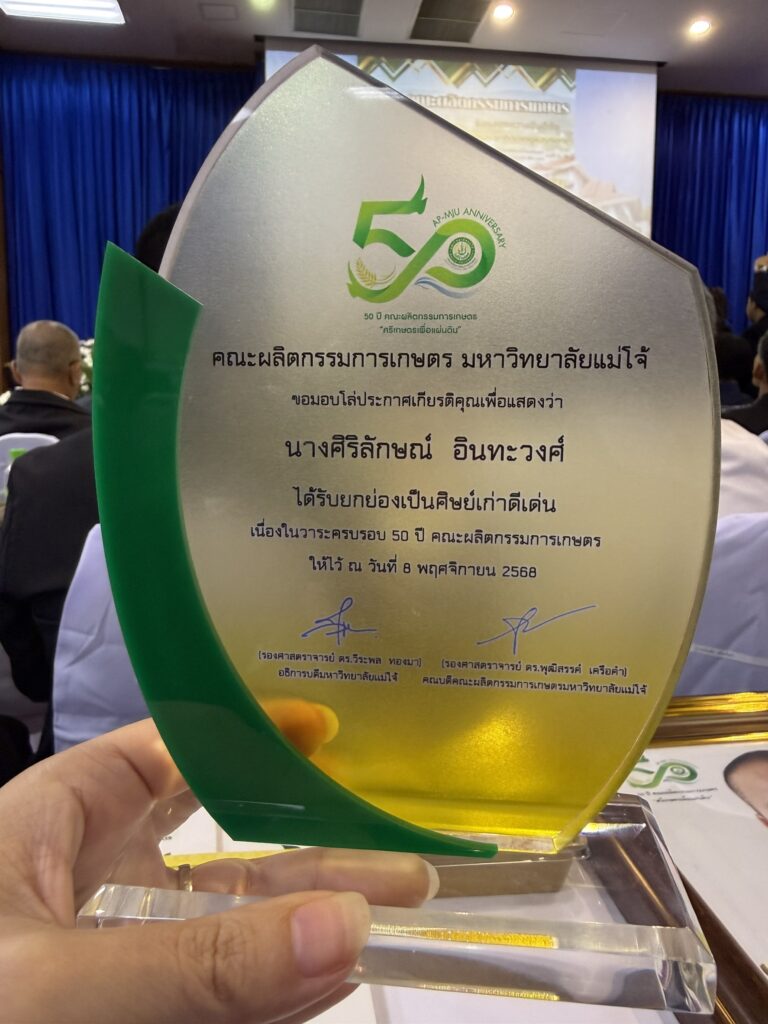 ขอแสดงความยินดีกับเจ้าหน้าที่ที่ได้รับโล่ศิษย์เก่าดีเด่นคณะผลิตกรรมการเกษตร มหาวิทยาลัยแม่โจ้