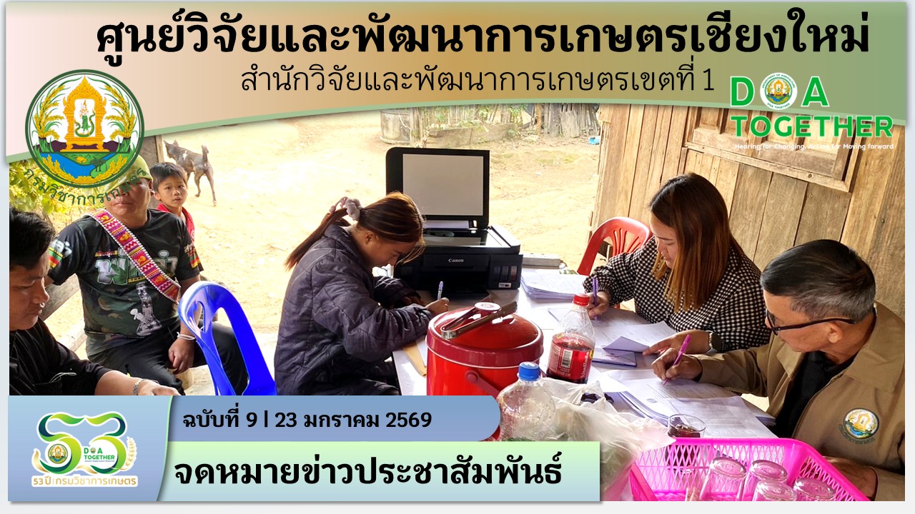 วันที่ 23 มกราคม 2569 กลุ่มบริการวิชาการงานรับรองมาตรฐานสินค้าเกษตร ศูนย์วิจัยและพัฒนาการเกษตรเชียงใหม่ ออกตรวจแปลงพืชตามมาตรฐานสินค้าเกษตรมกษ.4402-2568 แปลงพืชข้าวโพดเมล็ดแห้ง ในพื้นที่อำเภอไชยปราการ จังหวัดเชียงใหม่ เกษตรกร รวม 47 ราย