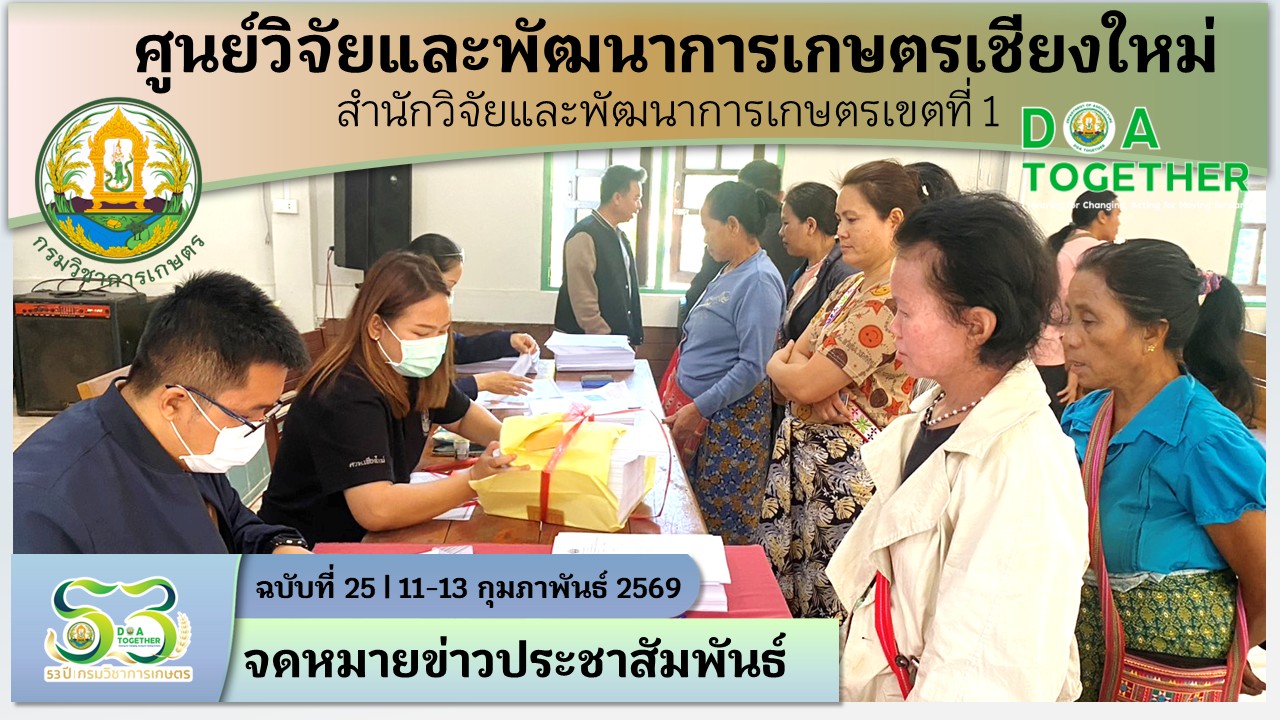 วันที่ 11-13 กุมภาพันธ์ 2569 กลุ่มบริการวิชาการงานรับรองมาตรฐานสินค้าเกษตร ศูนย์วิจัยและพัฒนาการเกษตรเชียงใหม่ ลงพื้นที่ตรวจต่ออายุ แปลงพืช ตามมาตรฐานสินค้าเกษตร การปฏิบัติทางการเกษตรที่ดีปลอดการเผาสำหรับข้าวโพดเมล็ดแห้ง (มกษ.4402-2568) แปลงพืชข้าวโพดเมล็ดแห้ง ในพื้นที่อำเภอเชียงดาว อำเภอเวียงแหง จังหวัดเชียงใหม่เกษตรกร รวม 250 ราย