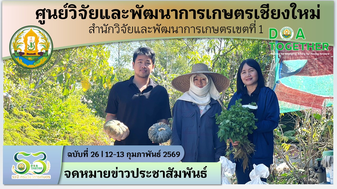 วันที่ 12-13 กุมภาพันธ์ 2569 กลุ่มงานบริการวิชาการ ศูนย์วิจัยและพัฒนาการเกษตรเชียงใหม่ ดำเนินงานติดตามและให้คำแนะนำการป้องกันกำจัดแมลงศัตรูพืช/โรคพืชแก่กลุ่มเกษตรกรขยายผลโครงการศูนย์เรียนรู้การผลิตพืชตามแนวพระราชดำริ ทฤษฏีใหม่ ณ ต.สันต้นหมื้อ ต.แม่นาวาง ต.ท่าตอน อ.แม่อาย และ ต.แม่ทะลบ อ.ไชยปราการ จ.เชียงใหม่