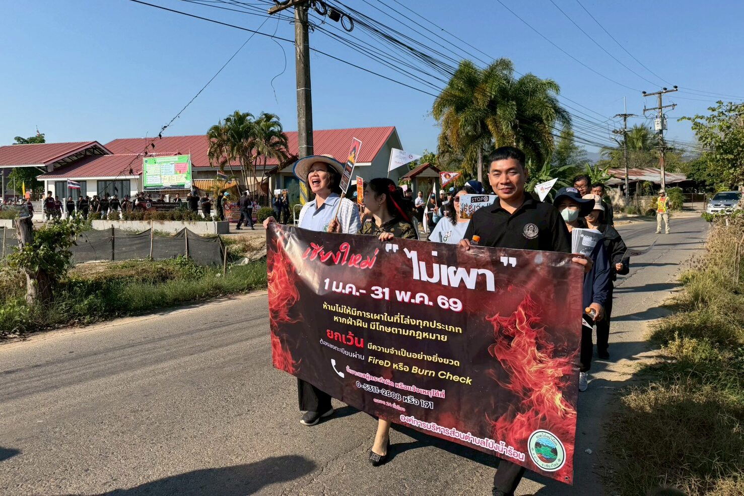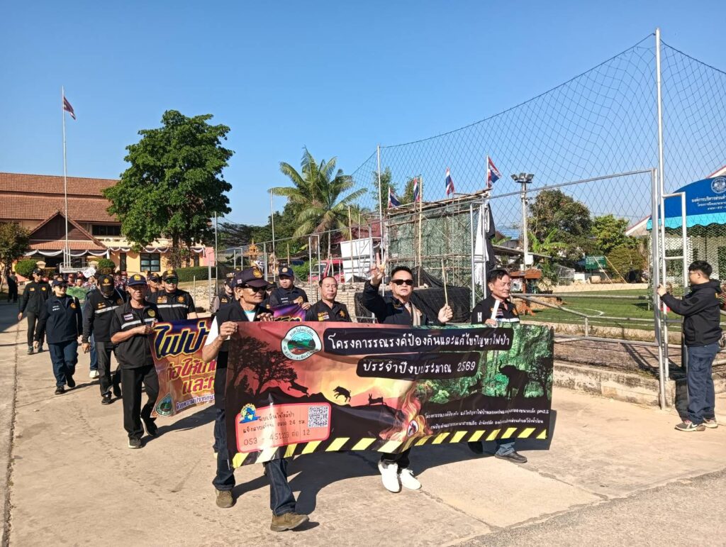 วันที่ 17 กุมภาพันธ์ 2569 นางสาวฉัตรสุดา เชิงอักษร ผู้อำนวยการศูนย์วิจัยและพัฒนาการเกษตรเชียงใหม่ พร้อมด้วยเจ้าหน้าที่ เข้าร่วมกิจกรรมเดินขบวนรณรงค์ป้องกันและแก้ไขปัญหาหมอกควันและไฟป่า เพื่อสร้างความรู้ความเข้าใจถึงอันตรายและผลกระทบจากไฟป่าแก่ประชาชนในพื้นที่ โดยมีกำหนดดำเนินโครงการช่วงเดือนกุมภาพันธ์–พฤษภาคม 2569 ณ ที่ทำการ องค์การบริหารส่วนตำบลโป่งน้ำร้อน ตำบลโป่งน้ำร้อน อำเภอฝาง จังหวัดเชียงใหม่