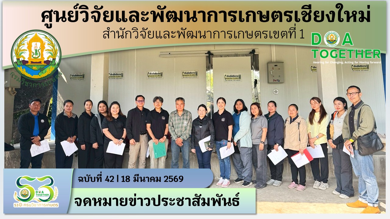 วันที่ 18 มีนาคม 2569 ผู้อำนวยการศูนย์วิจัยและพัฒนาการเกษตรเชียงใหม่ พร้อมด้วยเจ้าหน้าที่ศูนย์วิจัยและพัฒนาการเกษตรเชียงใหม่ ศูนย์วิจัยเกษตรหลวงเชียงใหม่ ศูนย์วิจัยและพัฒนาเกษตรที่สูงเชียงราย ศูนย์วิจัยและพัฒนาเมล็ดพันธุ์พืชเชียงใหม่ และสำนักวิจัยและพัฒนาการอารักขาพืช กรมวิชาการเกษตร จำนวน 25 ราย นำร่องการตรวจประเมินมาตรฐานหัวพันธุ์มันฝรั่งชั้นพันธุ์ขยาย ตาม มกษ. 5705-2565 โดยทดลองใช้แบบฟอร์มการตรวจสอบ (checklist) ที่กรมวิชาการเกษตรร่วมจัดทำกับสำนักกำหนดมาตรฐาน สำนักงานมาตรฐานสินค้าเกษตรและอาหารแห่งชาติ เพื่อใช้เป็นกรณีศึกษาแนวทางและปัญหาในการตรวจประเมินมาตรฐานหัวพันธุ์มันฝรั่ง มกษ. 5705-2565 ซึ่งจะก่อให้เกิดประโยชน์ต่อการรับรองมาตรฐานหัวพันธุ์มันฝรั่งได้ในอนาคต ณ ศูนย์วิจัยและพัฒนาการเกษตรเชียงใหม่ ตำบลโป่งน้ำร้อน อำเภอฝาง จังหวัดเชียงใหม่