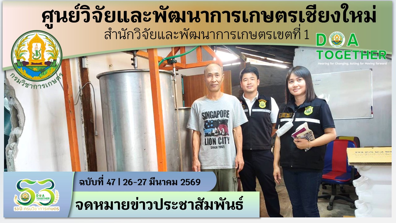 วันที่ 26-27 มีนาคม 2569 กลุ่มงานบริการวิชาการ งานควบคุมตามพระราชบัญญัติ ศูนย์วิจัยและพัฒนาการเกษตรเชียงใหม่ดำเนินงาน ตรวจโรงงานผลิตปุ๋ย และตรวจร้านจำหน่ายปัจจัยการผลิตพื้นที่ อ.ฝาง และ อ.ไชยปราการ จ.เชียงใหม่