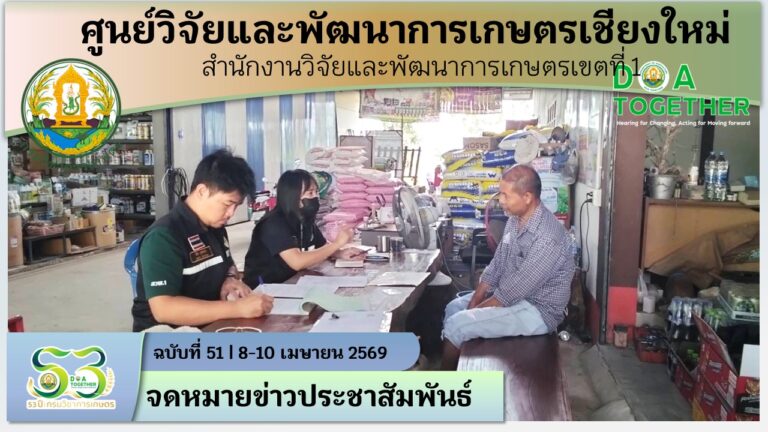 วันที่ 8-9 เมษายน 2569 กลุ่มงานบริการวิชาการ ศูนย์วิจัยและพัฒนาการเกษตรเชียงใหม่ ตรวจระบบควบคุมคุณภาพภายในของมูลนิธิโครงการหลวง ร่วมกับสำนักงานวิจัยและพัฒนาการเกษตร เขตที่ 1 ศูนย์วิจัยและพัฒนาการเกษตรแพร่ ศูนย์วิจัยและพัฒนาการเกษตรแม่ฮ่องสอน และศูนย์วิจัยและพัฒนาการเกษตรที่สูงเชียงราย ณ สำนักงานมูลนิธิโครงการหลวง ตำบลแม่เหียะ อำเภอเมือง จังหวัดเชียงใหม่