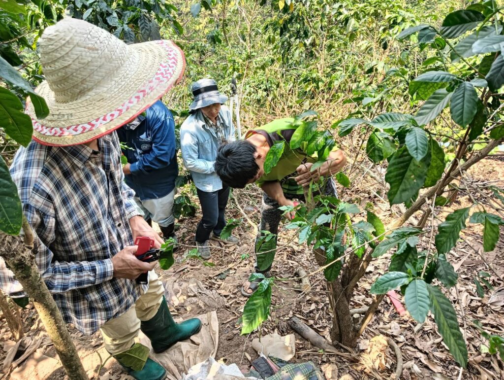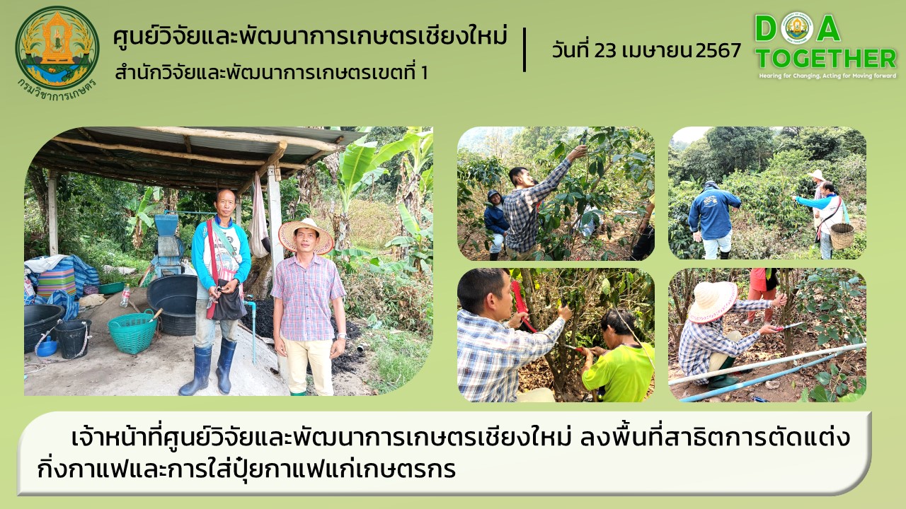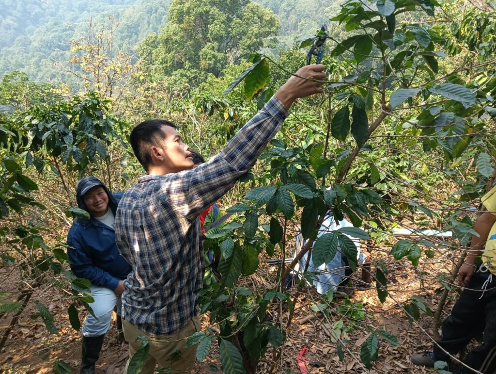 เจ้าหน้าที่ศูนย์วิจัยและพัฒนาการเกษตรเชียงใหม่ ลงพื้นที่สาธิตการตัดแต่งกิ่งกาแฟและการใส่ปุ๋ยกาแฟแก่เกษตรกร