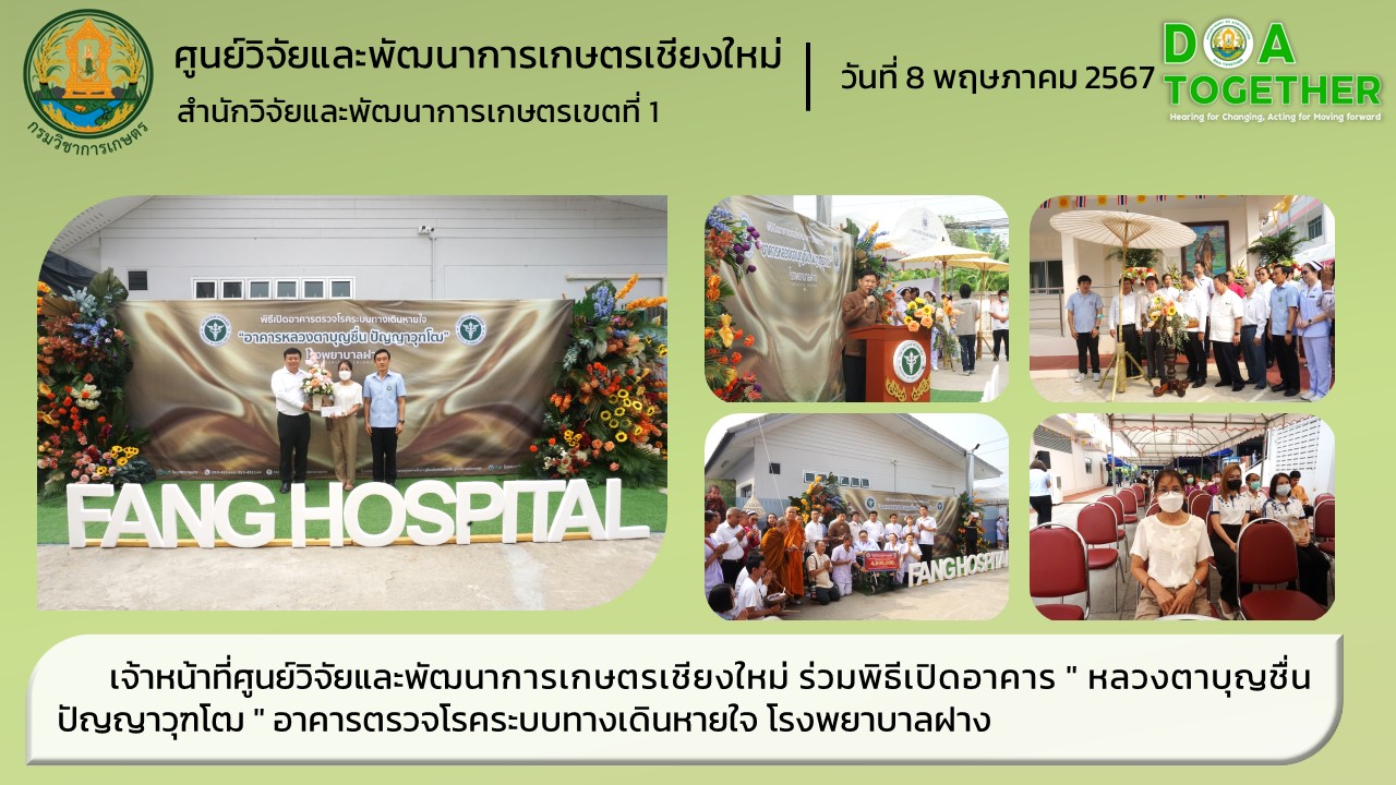 นางนงคราญ นึกเร็ว หัวหน้าฝ่ายบริหารทั่วไป ศูนย์วิจัยและพัฒนาการเกษตรเชียงใหม่ ร่วมพิธีเปิดอาคาร “หลวงตาบุญชื่น ปัญญาวุฑโฒ” อาคารตรวจโรคระบบทางเดินหายใจ ณ โรงพยาบาลฝาง ตำบลเวียง อำเภอฝาง จังหวัดเชียงใหม่