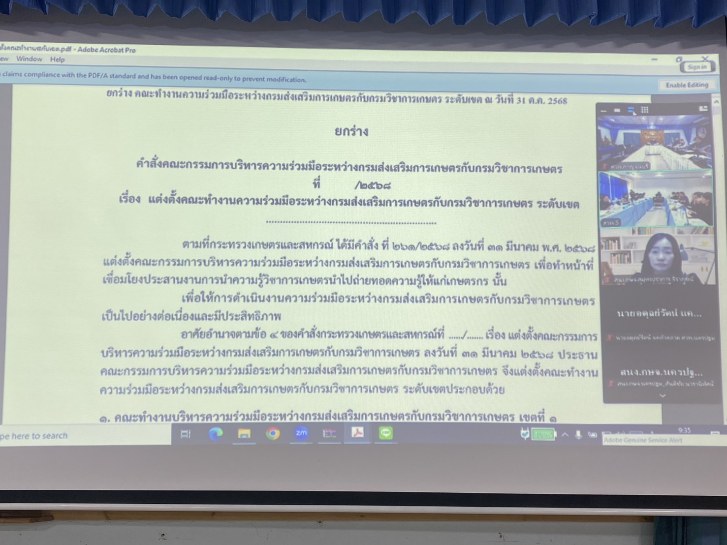 วันที่ 28 มกราคม 2569 ดร.อุดมศักดิ์ ดวนมีสุข ผู้อำนวยการศูนย์วิจัยและพัฒนาการเกษตรกาญจนบุรี พร้อมคณะ เข้าร่วมประชุมคณะทำงานความร่วมมือระหว่างกรมส่งเสริมการเกษตรกับกรมวิชาการเกษตรด้านการรับรองแหล่งผลิตพืชตามระบบการจัดการคุณภาพการปฏิบัติทางการเกษตรที่ดีสำหรับพืช (GAP พืช)และเกษตรอินทรีย์ (MOU GAP & ORG) ระดับเขตครั้งที่ 1/2569 ผ่านระบบออนไลน์ Zoom Meetings