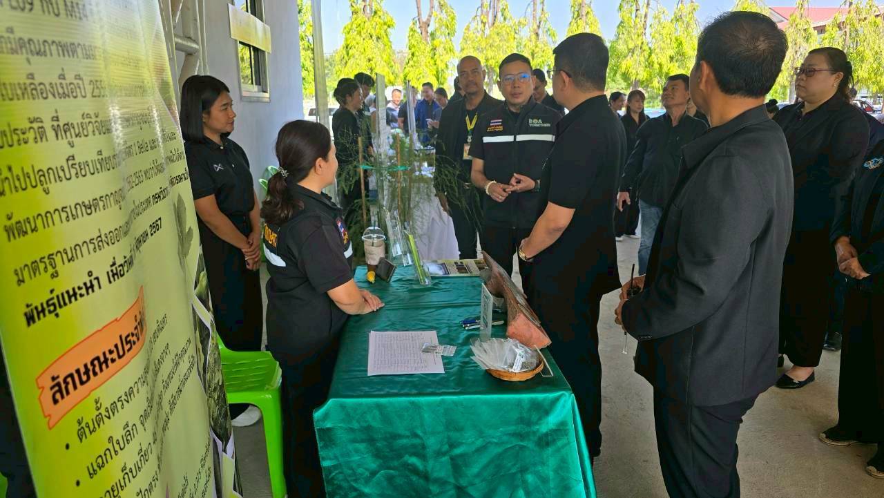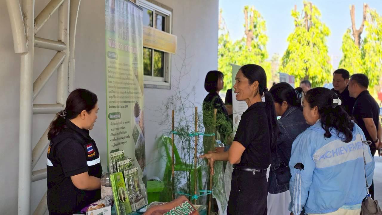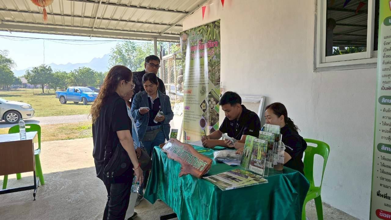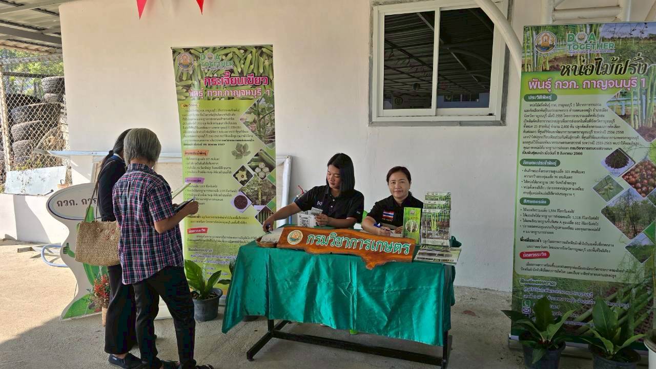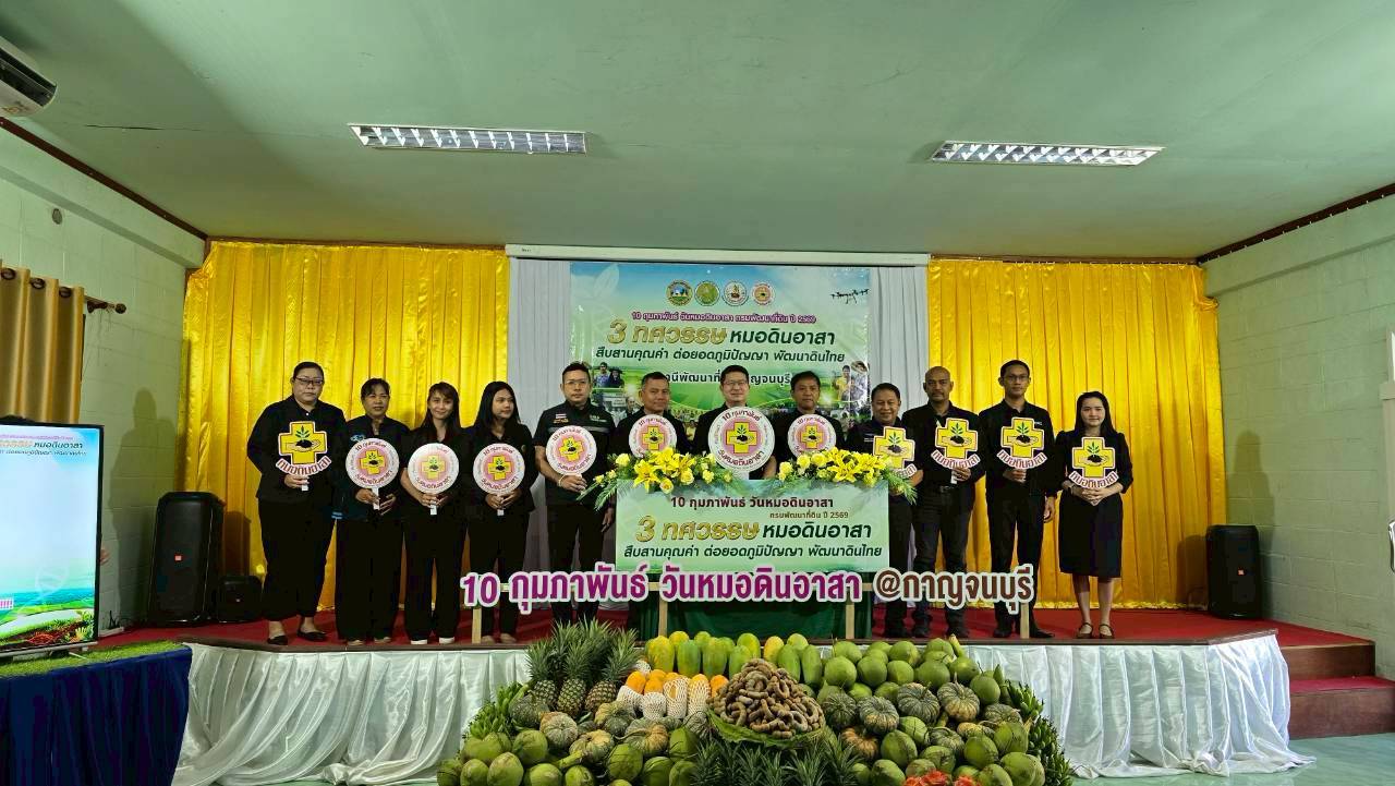 วันพฤหัสบดีที่ 12 กุมภาพันธ์ 2569 ดร.อุดมศักดิ์ ดวนมีสุข ผู้อำนวยการศูนย์วิจัยและพัฒนาการเกษตรกาญจนบุรี พร้อมด้วยนางสาวนันทนา โพธิ์สุข นักวิชาการเกษตรชำนาญการ นางสาวชฎาพิศ ไทรสังขดำรงพร นักวิชาการเกษตร และนายสมประสงค์ อ้นสี นักวิชาการเกษตร เข้าร่วมงานและร่วมจัดนิทรรศการวิชาการเผยแพร่พืชพันธุ์ดีของกรมวิชาการเกษตรได้แก่ หน่อไม้ฝรั่งพันธุ์ กวก.กาญจนบุรี 1 และกระเจี๊ยบเขียวพันธุ์ กวก.กาญจนบุรี 1 ในงานวันหมอดินอาสา ประจำปี พ.ศ. 2569 ภายใต้กิจกรรม : 3 ทศวรรษ หมอดินอาสาสืบสานคุณค่า ต่อยอดภูมิปัญญาพัฒนาดินไทย ณ สถานีพัฒนาที่ดินกาญจนบุรี ตำบลปากแพรก อำเภอเมืองกาญจนบุรี จังหวัดกาญจนบุรี