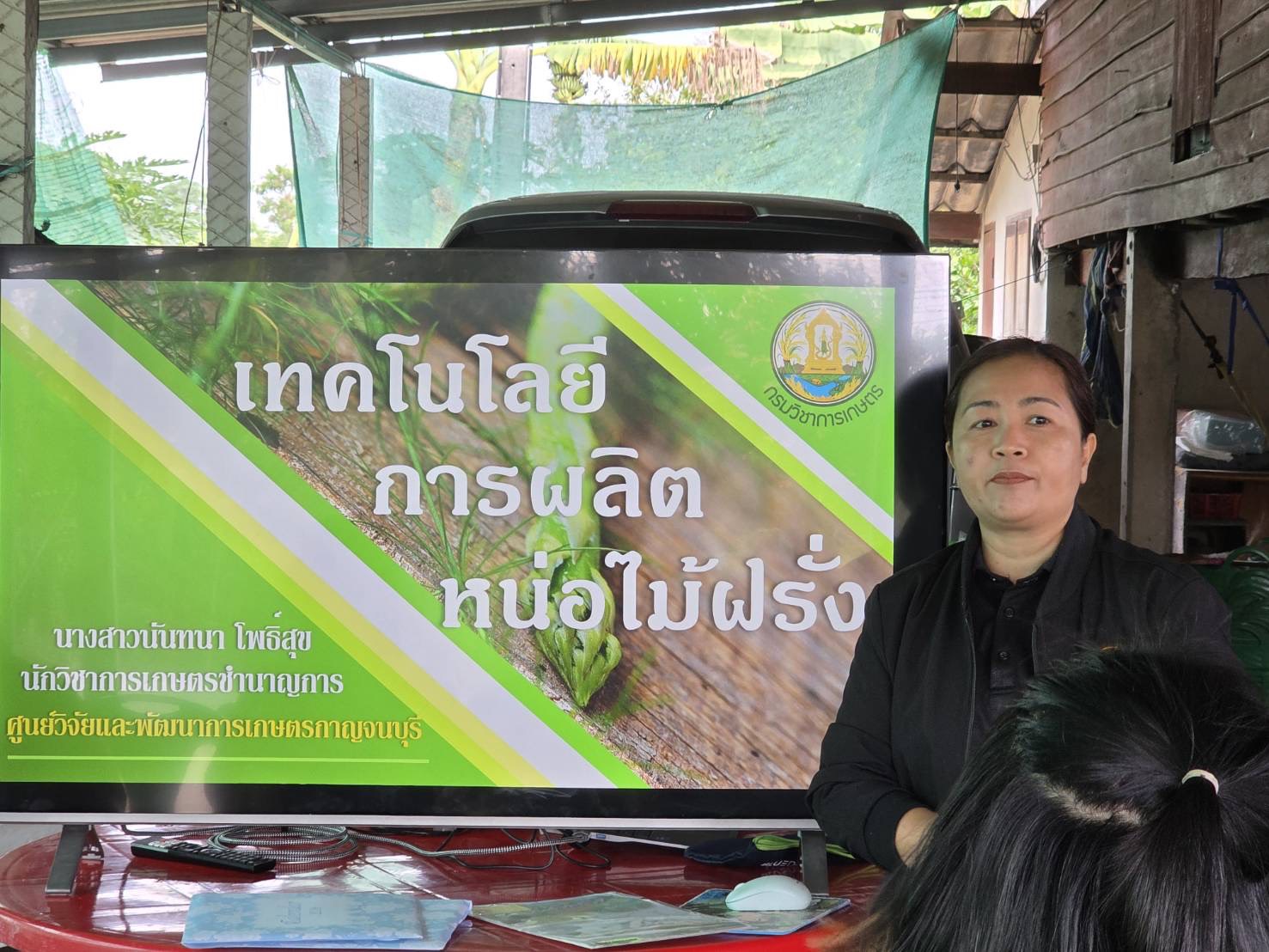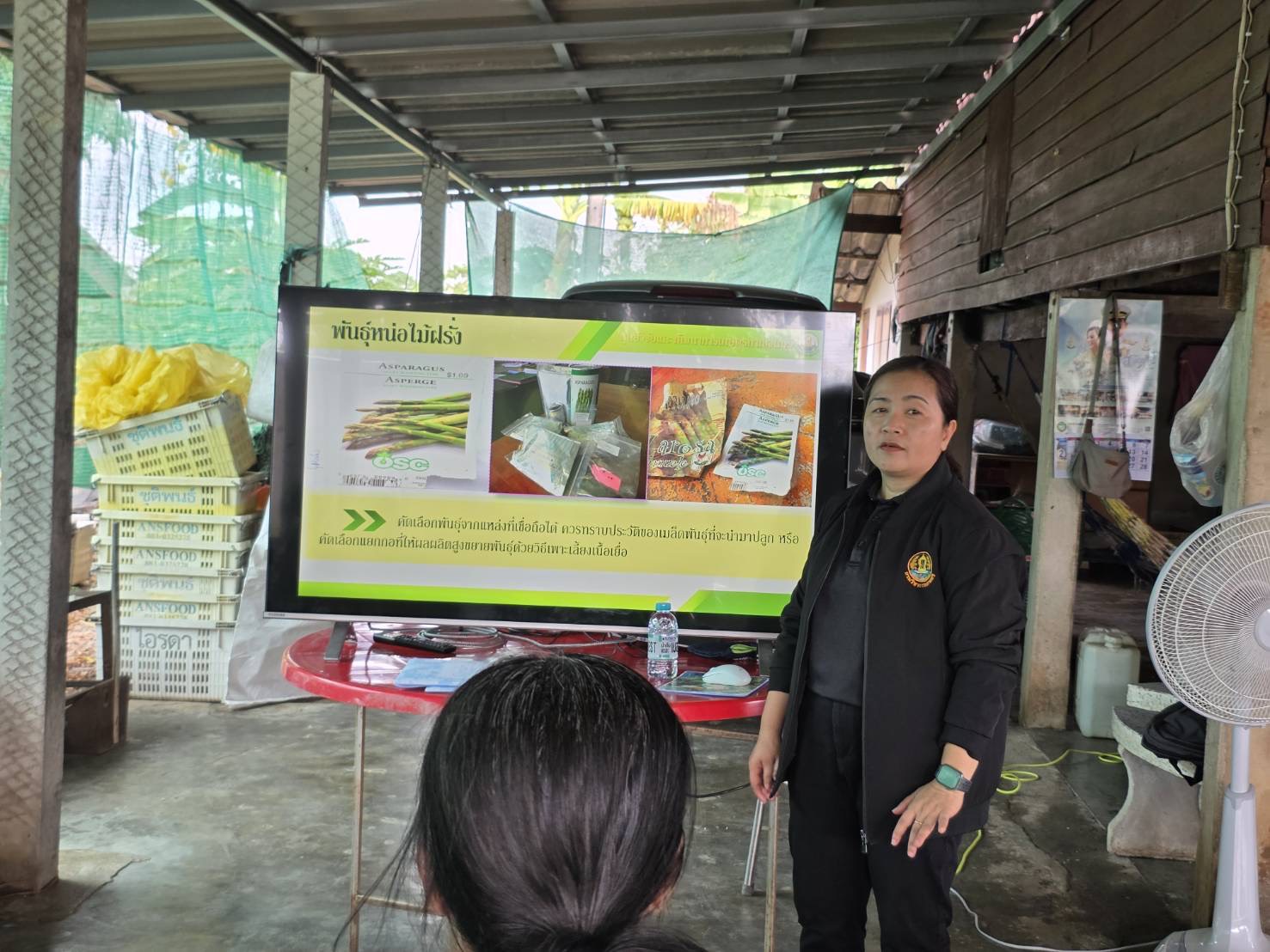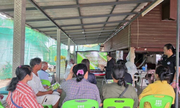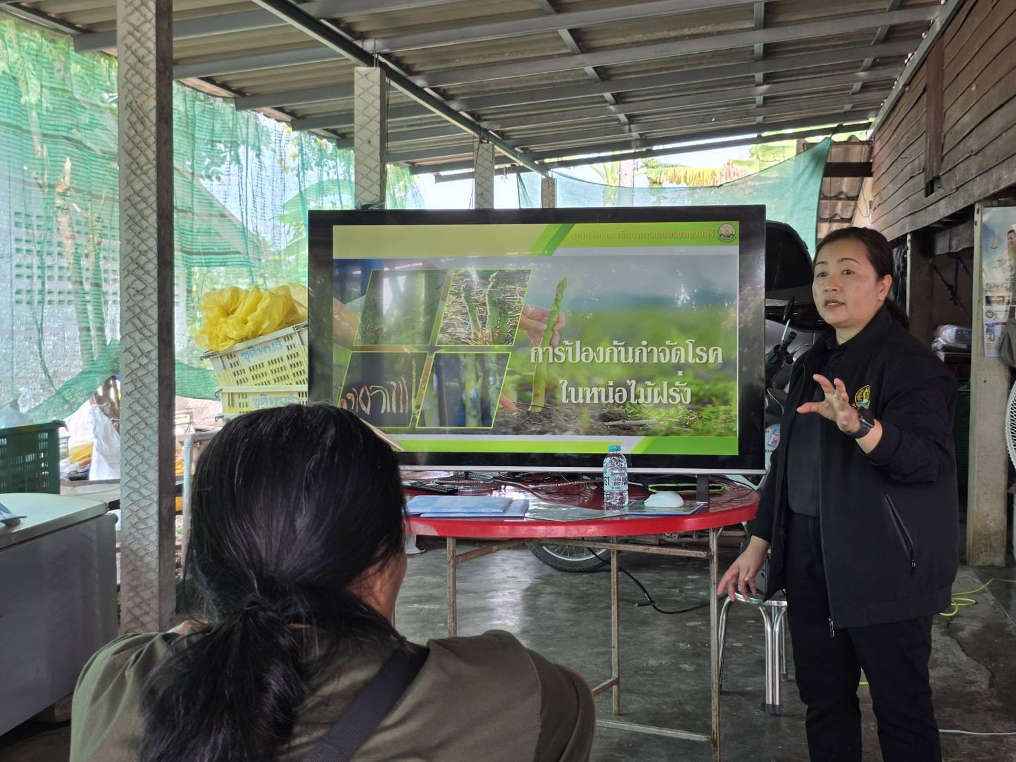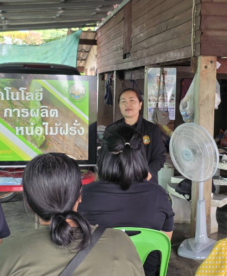 วันพุธที่ 18 กุมภาพันธ์ 2569 ดร.อุดมศักดิ์ ดวนมีสุข ผู้อำนวยการศูนย์วิจัยและพัฒนาการเกษตรกาญจนบุรี มอบหมายให้ นางสาวนันทนา โพธิ์สุข นักวิชาการเกษตรชำนาญ เป็นวิทยากรบรรยายให้ความรู้กับเกษตรกรในหัวข้อเรื่อง การเพิ่มประสิทธิภาพการผลิตหน่อไม้ฝรั่ง ภายใต้โครงการศูนย์เรียนรู้การเพิ่มประสิทธิภาพการผลิตสินค้าเกษตร (ศพก.) จัดโดยสำนักงานเกษตรอำเภอท่ามะกา โดยมีเกษตรกรเข้าร่วม จำนวน 15 ราย ณ กลุ่มส่งเสริมอาชีพผู้ปลูกหน่อไม้ฝรั่งตำบลท่าไม้ หมู่ 2 ตำบลท่าไม้ อำเภอท่ามะกา จังหวัดกาญจนบุรี