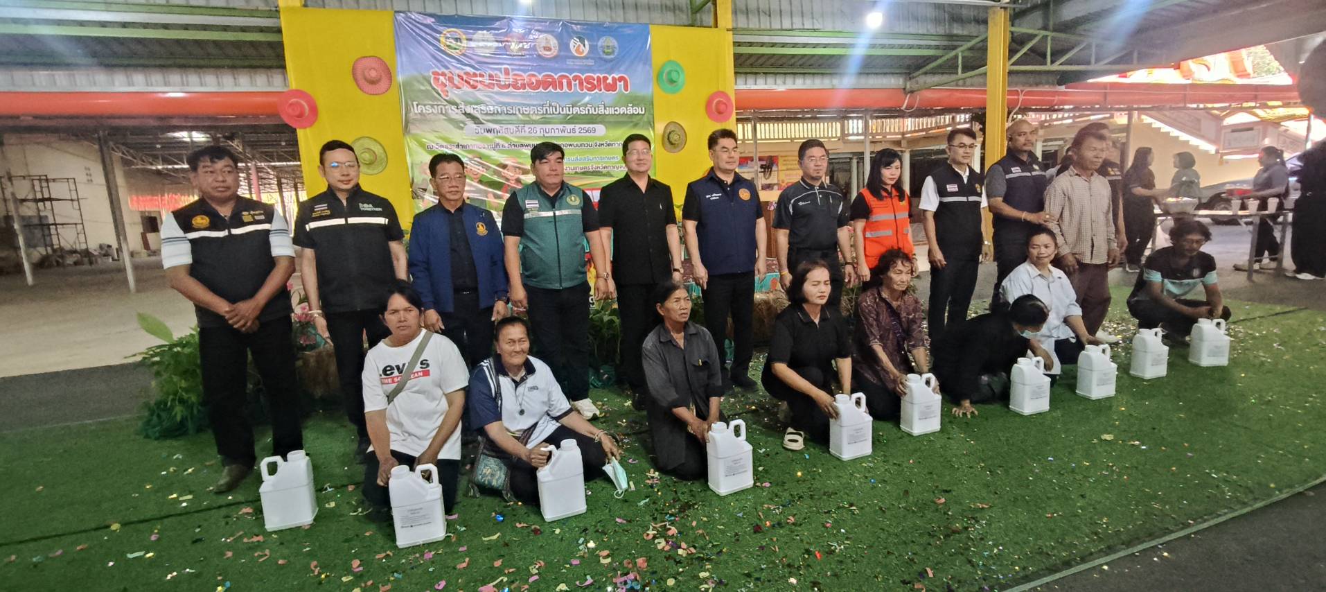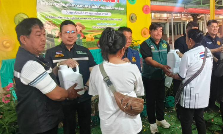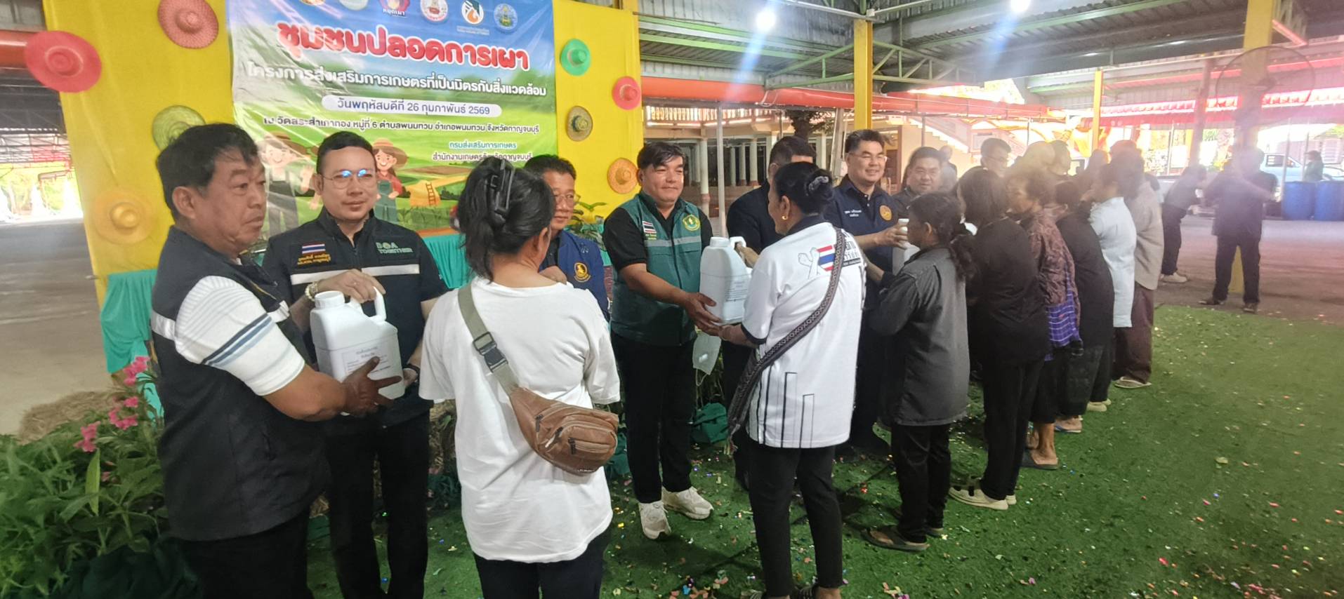 วันที่ 26 กุมภาพันธ์ 2569 ดร.อุดมศักดิ์ ดวนมีสุข ผู้อำนวยการศูนย์วิจัยและพัฒนาการเกษตรกาญจนบุรีเข้าร่วมกิจกรรมชุมชนปลอดภัยการเผา เพื่อส่งเสริมการเกษตรที่เป็นมิตรต่อสิ่งแวดล้อม ลดการเผาในพื้นที่การเกษตรเสริมสร้างการมีส่วนร่วมของเกษตรกร และชุมชนในการบริการจัดการพื้นที่ และแก้ไข้ปัญหาการเผาในพื้นที่การเกษตรสร้างรายได้และมูลค่าเพิ่มจากวัสดุเหลือใช้ทางการเกษตร ณ วัดสระเภาทอง หมูที่ 6 ตำบลพนมทวน อำเภอพนมทวน จังหวัดกาญจนบุรี