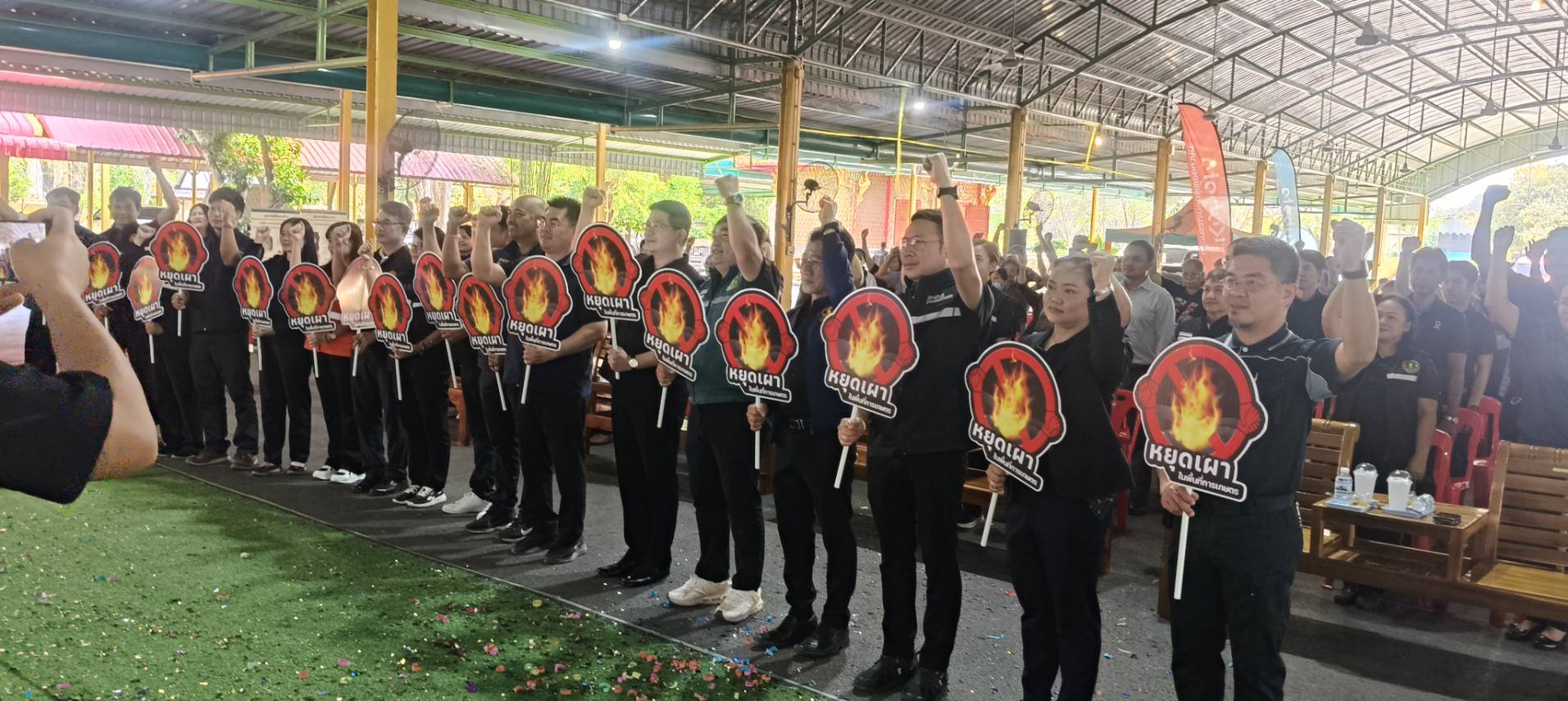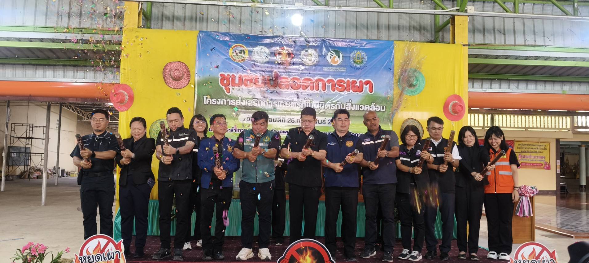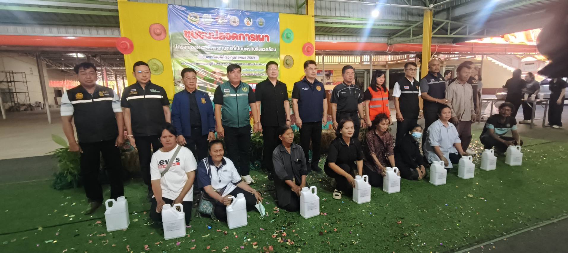 วันที่ 26 กุมภาพันธ์ 2569 ดร.อุดมศักดิ์ ดวนมีสุข ผู้อำนวยการศูนย์วิจัยและพัฒนาการเกษตรกาญจนบุรีเข้าร่วมกิจกรรมชุมชนปลอดภัยการเผา เพื่อส่งเสริมการเกษตรที่เป็นมิตรต่อสิ่งแวดล้อม ลดการเผาในพื้นที่การเกษตรเสริมสร้างการมีส่วนร่วมของเกษตรกร และชุมชนในการบริการจัดการพื้นที่ และแก้ไข้ปัญหาการเผาในพื้นที่การเกษตรสร้างรายได้และมูลค่าเพิ่มจากวัสดุเหลือใช้ทางการเกษตร ณ วัดสระเภาทอง หมูที่ 6 ตำบลพนมทวน อำเภอพนมทวน จังหวัดกาญจนบุรี