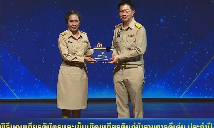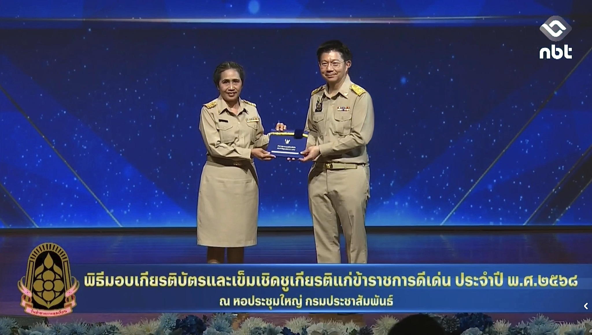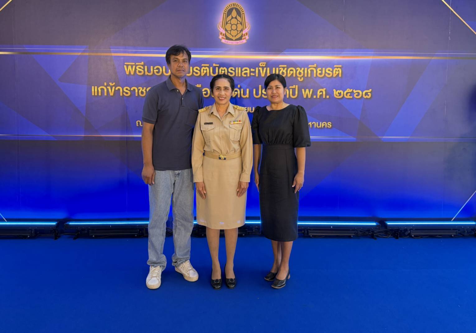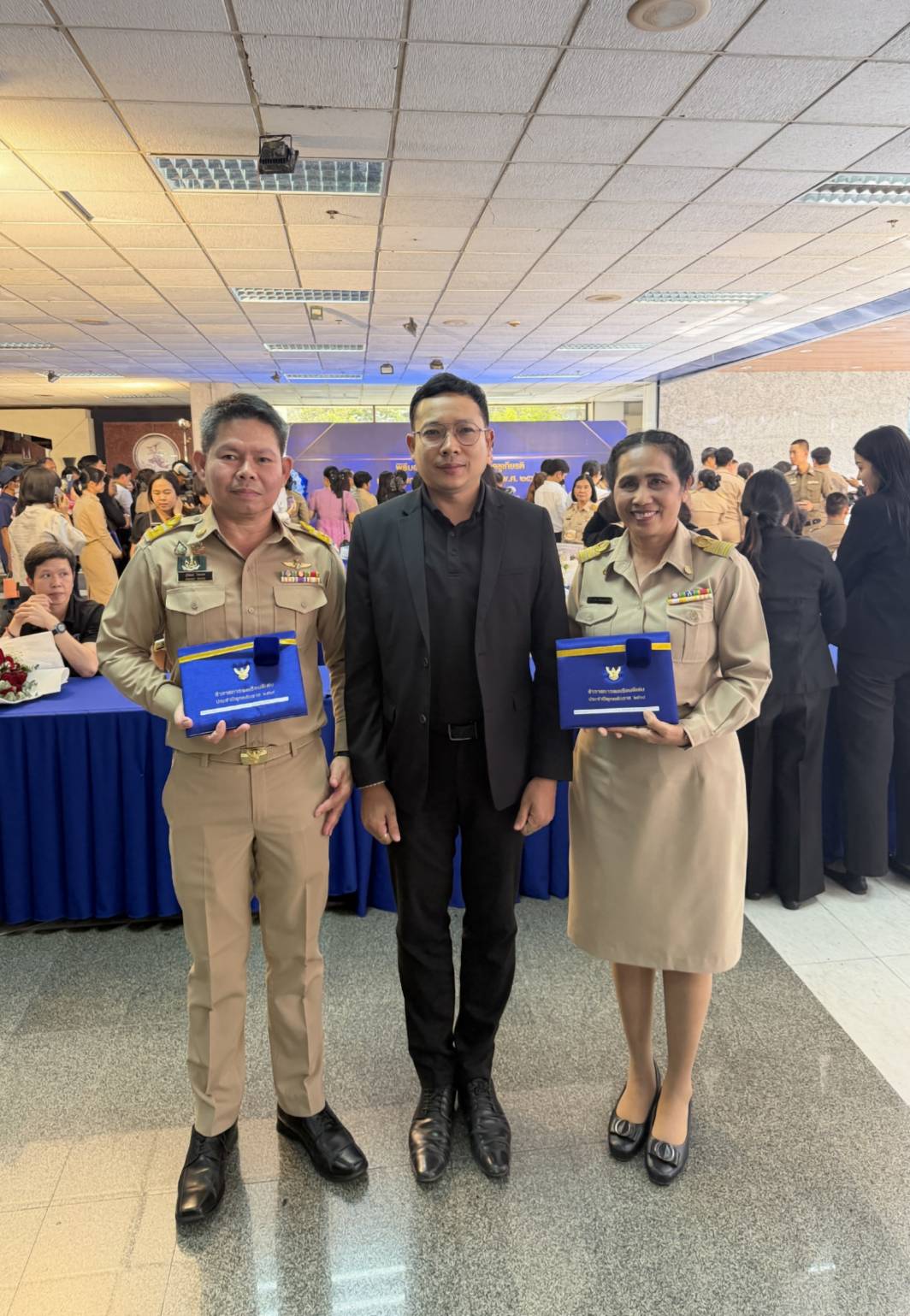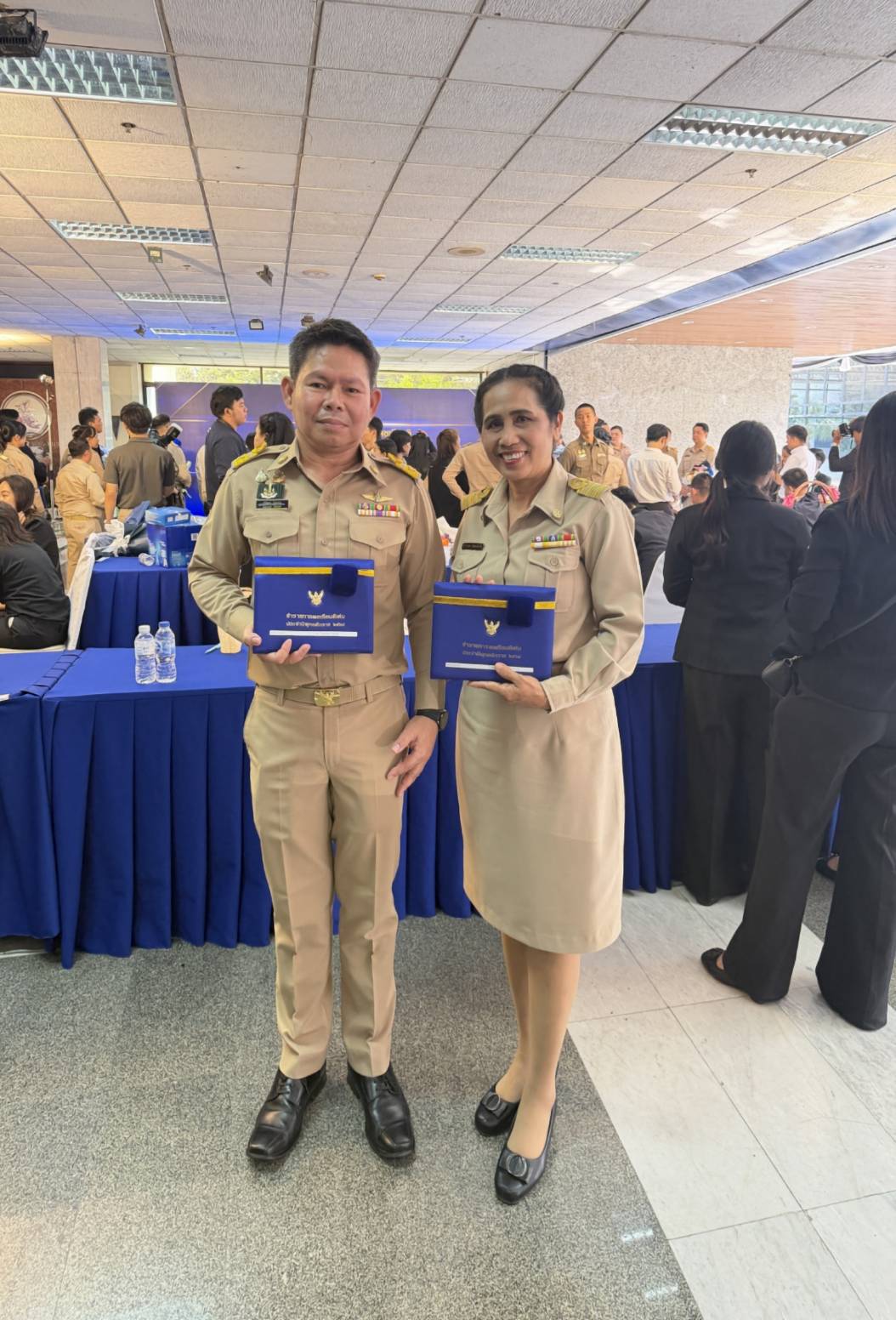 วันที่อังคารที่ 1 เมษายน 2569 ดร.อุดมศักดิ์ ดวนมีสุข ผู้อำนวยการศูนย์วิจัยและพัฒนาการเกษตรกาญจนบุรี และนางรัชนก ทองเวียง หัวหน้าฝ่ายบริหารทั่วไป ร่วมแสดงความยินดีกับ นางกฤตพร เฟื่องพานิชเจริญ พนักงานพัสดุ ระดับ ส 3 ศูนย์วิจัยและพัฒนาการเกษตรกาญจนบุรี สำนักงานวิจัยและพัฒนาการเกษตรเขตที่ 5 ได้รับรางวัล ข้าราชการพลเรือนดีเด่น กรมวิชาการเกษตร ประจำปี พ.ศ.2568 ระดับประเทศ เนื่องในวันข้าราชการพลเรือน ประจำปี 2569 ณ หอประชุมใหญ่ กรมประชาสัมพันธ์ กรุงเทพมหานคร