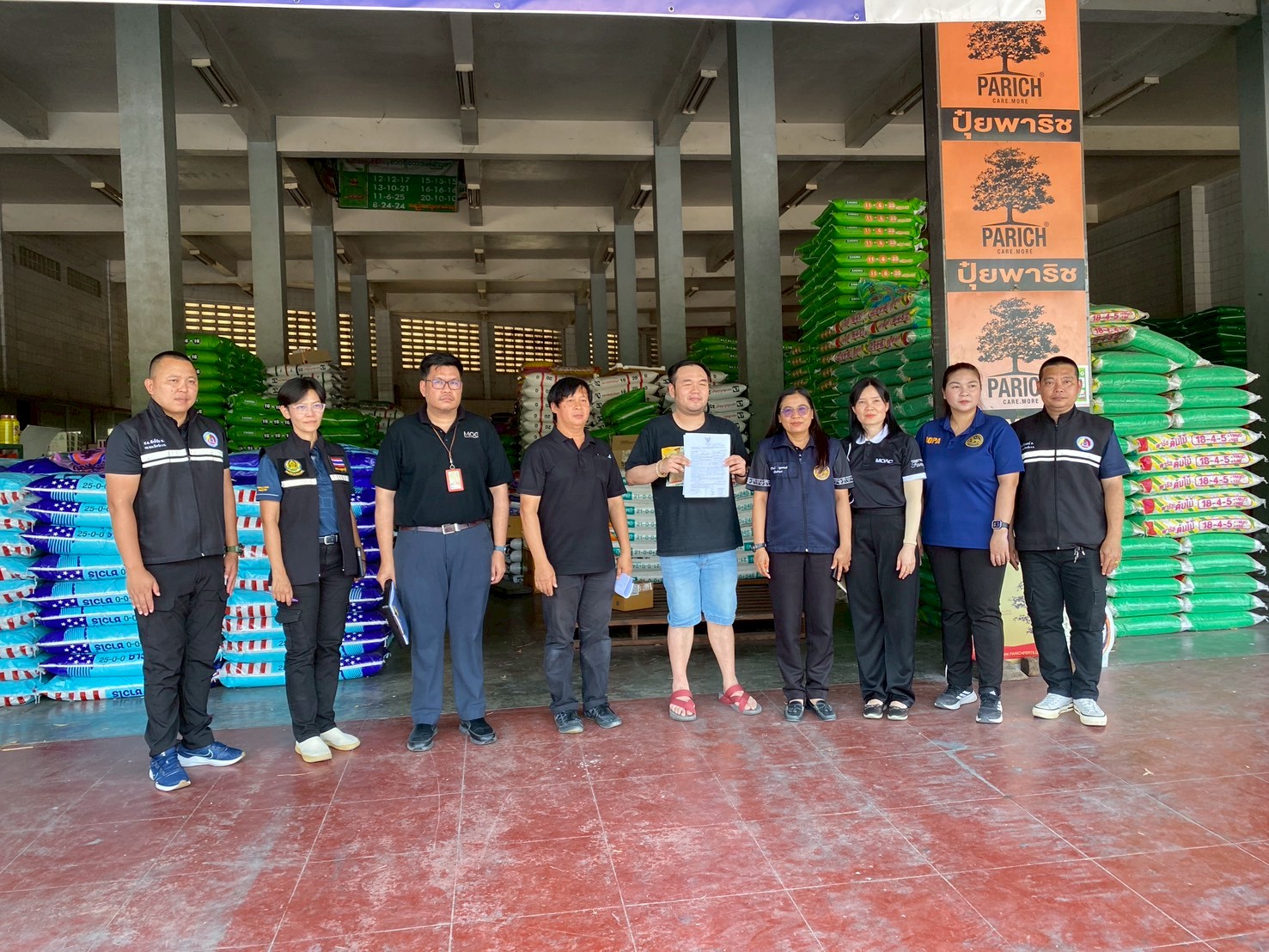วันพุธที่ 1 เมษายน พ.ศ. 2569 นายอุดมศักดิ์ ดวนมีสุข ผู้อำนวยการศูนย์วิจัยและพัฒนาการเกษตรกาญจนบุรี มอบหมายให้นางรัตนาภรณ์ คชวงศ์ นักวิทยาศาสตร์ชำนาญการพิเศษ และนายวัชรพล เชื้อเพชร เจ้าพนักงานการเกษตรชำนาญงาน ร่วมบูรณาการความร่วมมือกับสำนักงานพาณิชย์จังหวัดกาญจนบุรี และหน่วยงานที่เกี่ยวข้อง ได้แก่ เกษตรและสหกรณ์จังหวัดกาญจนบุรี กอ.รมน.จังหวัดกาญจนบุรี และฝ่ายปกครองจังหวัดกาญจนบุรี ลงพื้นที่ตรวจสอบการจำหน่ายปุ๋ยเคมีและปัจจัยการผลิตทางการเกษตรอื่นๆ เพื่อเฝ้าระวังและป้องปรามผู้ประกอบการไม่ให้ฉวยโอกาสกักตุนสินค้า ปรับขึ้นราคาสินค้าโดยไม่เป็นธรรม และควบคุมราคาจำหน่ายให้เป็นไปตามกลไกตลาดที่เหมาะสม โดยพบปัญหา “แม่ปุ๋ย” (วัตถุดิบหลักสำหรับผสมปุ๋ยสูตรต่างๆ) เริ่มมีภาวะขาดแคลน และมีปริมาณไม่เพียงพอต่อความต้องการของเกษตรกรในพื้นที่ ณ อำเภอเมืองกาญจนบุรี อำเภอท่าม่วง และอำเภอท่ามะกา จังหวัดกาญจนบุรี
