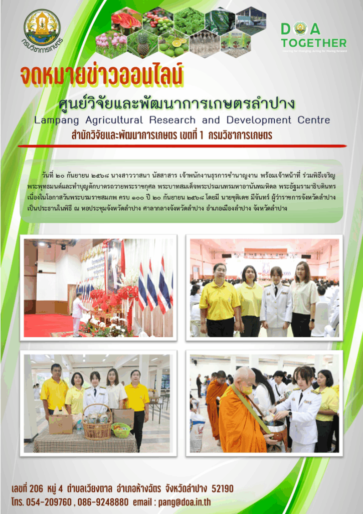 ยินดีต้อนรับเข้าสู่เว็บไซต์ศูนย์วิจัยและพัฒนาการเกษตรลำปาง