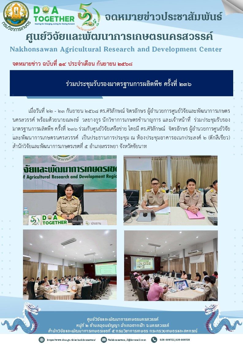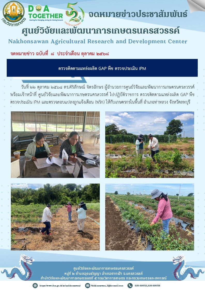 ...ประชาสัมพันธ์กิจกรรม BALANCE DOA TOGETHER 📣📣..!เตือนภัยการเกษตร เตือนภัยการเกษตร“เตือนภัยการเกษตร” ช่วงวันที่ 15 ตุลาคม -28 ตุลาคม 2568เตือนภัยการเกษตร“เตือนภัยการเกษตร” ช่วงวันที่ 1-14 ตุลาคม 2568เตือนภัยการเกษตร“เตือนภัยการเกษตร” ช่วงวันที่ 17-30 กันยายน 2568เตือนภัยการเกษตร“เตือนภัยการเกษตร” ช่วงวันที่ 03 – 16 กันยายน 2568เตือนภัยการเกษตร“เตือนภัยการเกษตร” ช่วงวันที่ 20 สิงหาคม 2568 – 02 กันยายน 2568 📣จดหมายข่าวศูนย์วิจัยและพัฒนาการเกษตรนครสวรรค์ 📚📚หนังสือและเอกสารเผยแพร่📚📚 🙏e-Services สำหรับประชาชน🙏 ระบบงานภายใน 👉👉ระบบสารสนเทศ🖥️🖥️ 💜ข้อมูลภาครัฐ 💜 Facebook Youtube