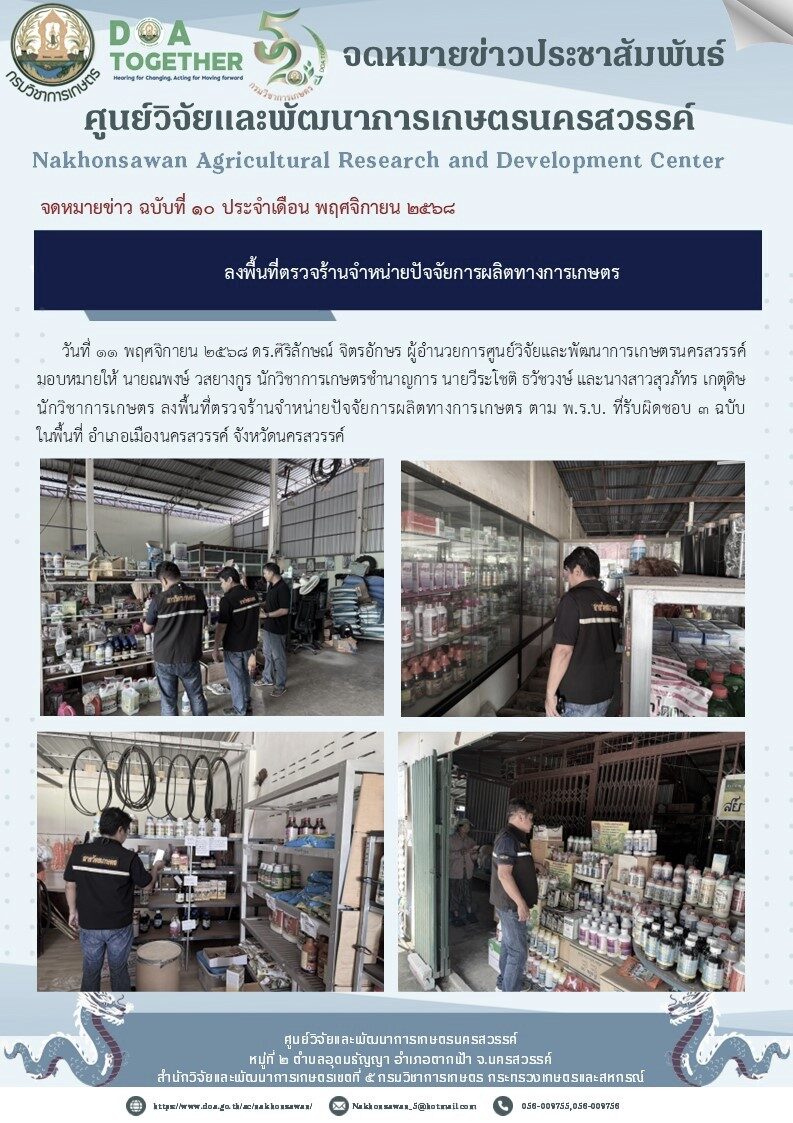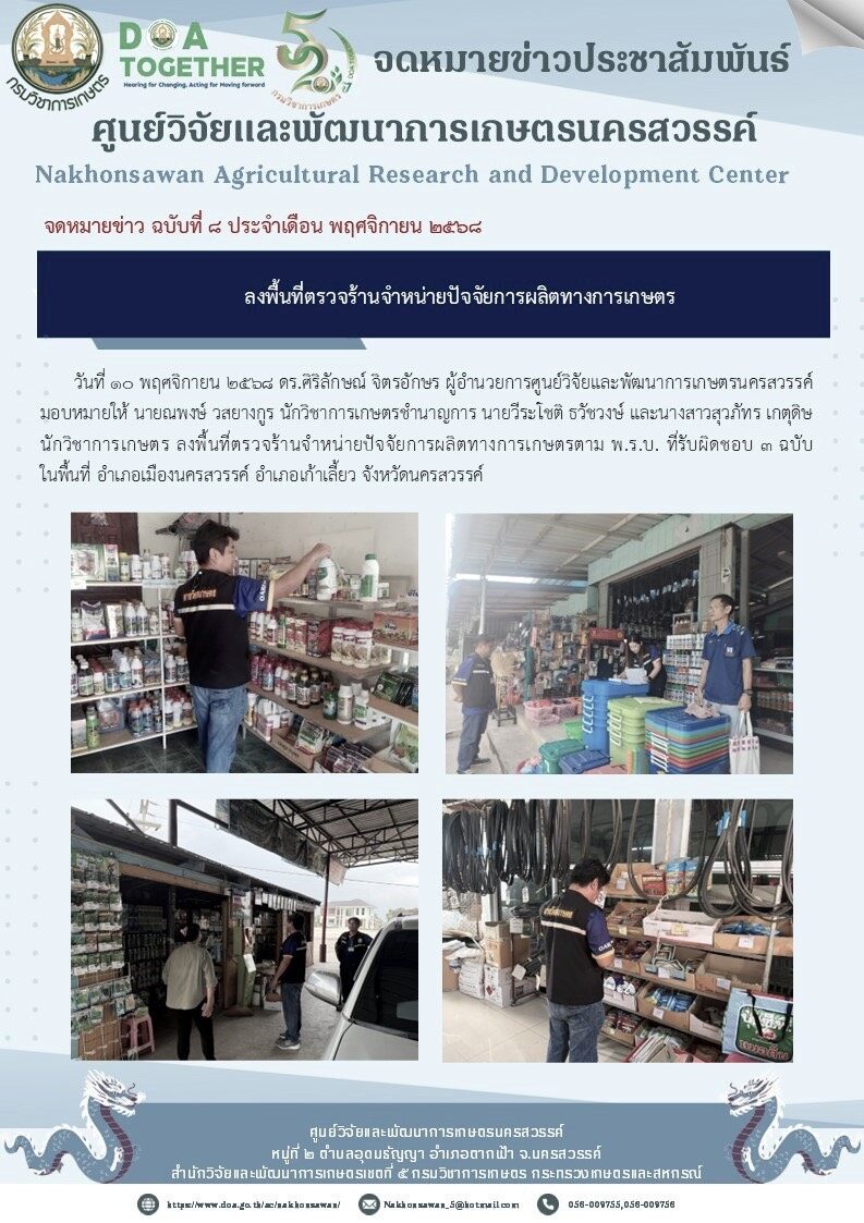 ...ประชาสัมพันธ์กิจกรรม BALANCE DOA TOGETHER 📣📣..!เตือนภัยการเกษตร เตือนภัยการเกษตร“เตือนภัยการเกษตร” ช่วงวันที่ 12 พฤศจิกายน -25 พฤศจิกายน 2568เตือนภัยการเกษตร“เตือนภัยการเกษตร” ช่วงวันที่ 29 ตุลาคม -11 พฤศจิกายน 2568เตือนภัยการเกษตร“เตือนภัยการเกษตร” ช่วงวันที่ 15 ตุลาคม -28 ตุลาคม 2568เตือนภัยการเกษตร“เตือนภัยการเกษตร” ช่วงวันที่ 1-14 ตุลาคม 2568เตือนภัยการเกษตร“เตือนภัยการเกษตร” ช่วงวันที่ 17-30 กันยายน 2568 📣จดหมายข่าวศูนย์วิจัยและพัฒนาการเกษตรนครสวรรค์ 📚📚หนังสือและเอกสารเผยแพร่📚📚 🙏e-Services สำหรับประชาชน🙏 ระบบงานภายใน 👉👉ระบบสารสนเทศ🖥️🖥️ 💜ข้อมูลภาครัฐ 💜 Facebook Youtube