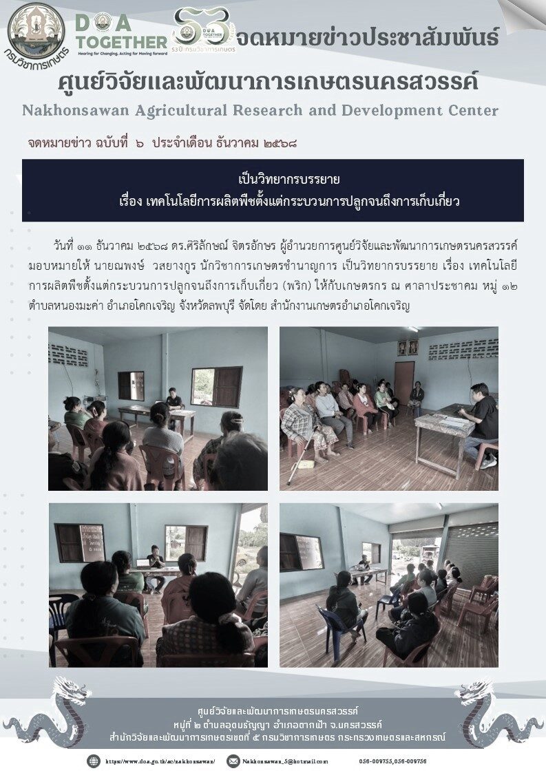 📣จดหมายข่าวศูนย์วิจัยและพัฒนาการเกษตรนครสวรรค์