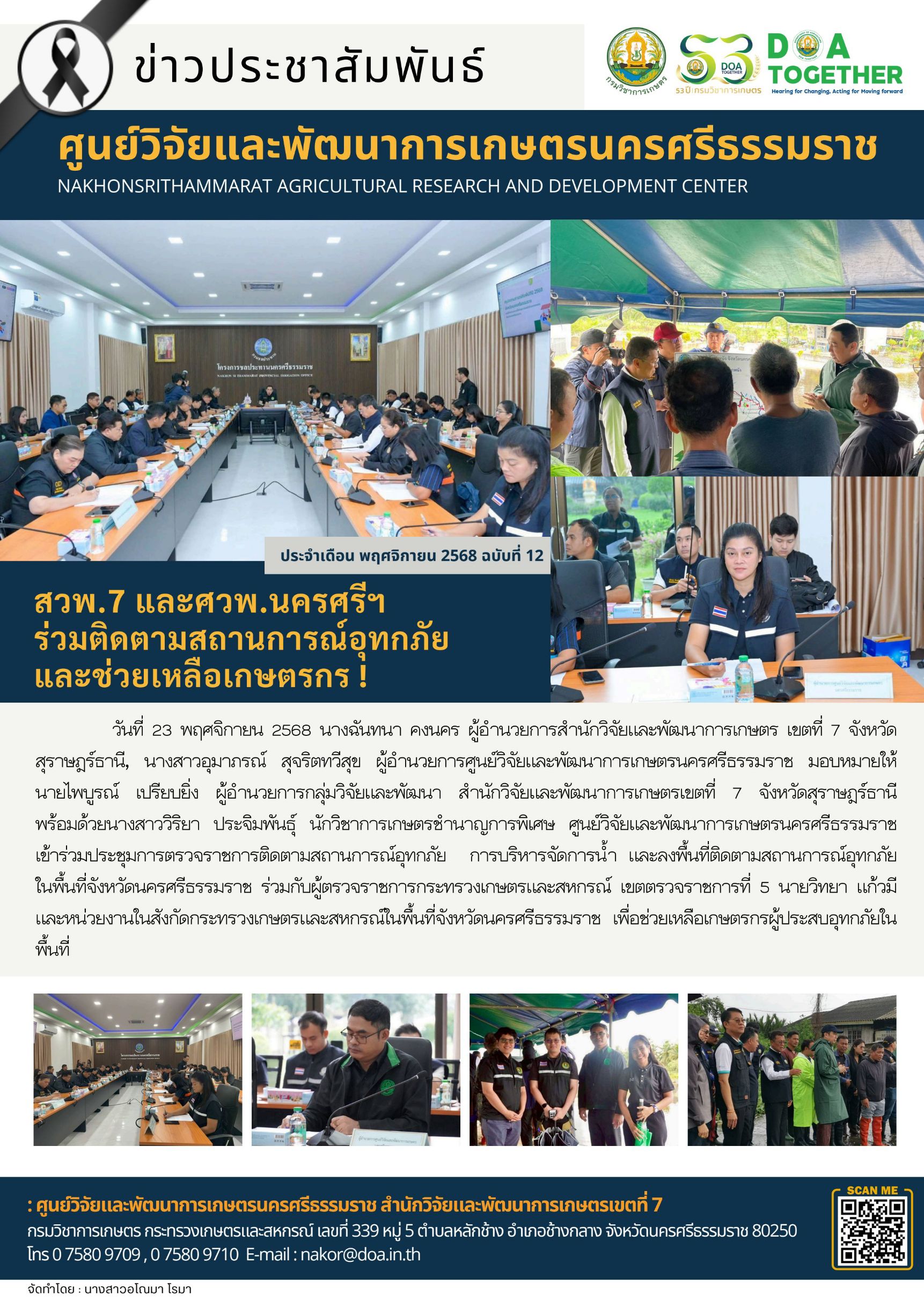 วันที่ 23 พฤศจิกายน 2568 สวพ.7 และศวพ.นครศรีฯ ร่วมติดตามสถานการณ์อุทกภัยและช่วยเหลือเกษตรกร!