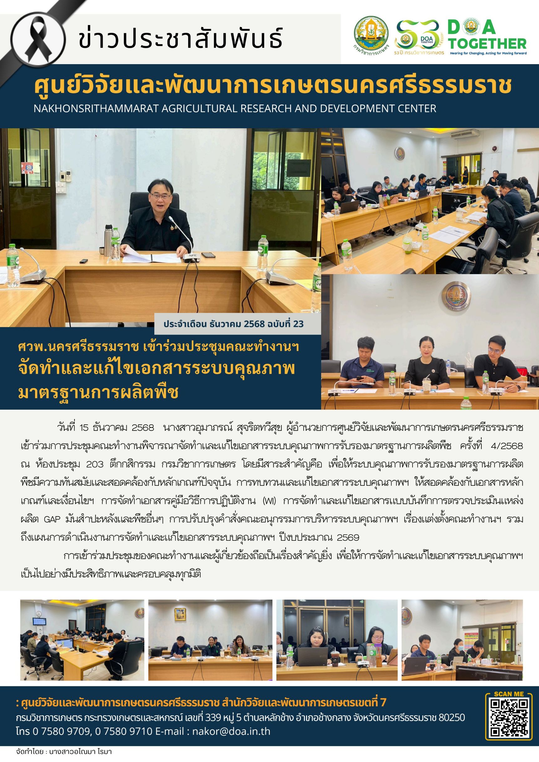 NAKHONSRITHAMMARAT AGRICULTURAL RESEARCH AND DEVELOPMENT CENTER