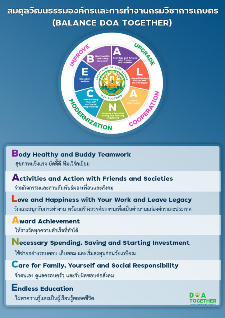 สมดุลวัฒนธรรมองค์กร และการทำงาน กรมวิชาการเกษตร (BALANCE DOA TOGETHER)