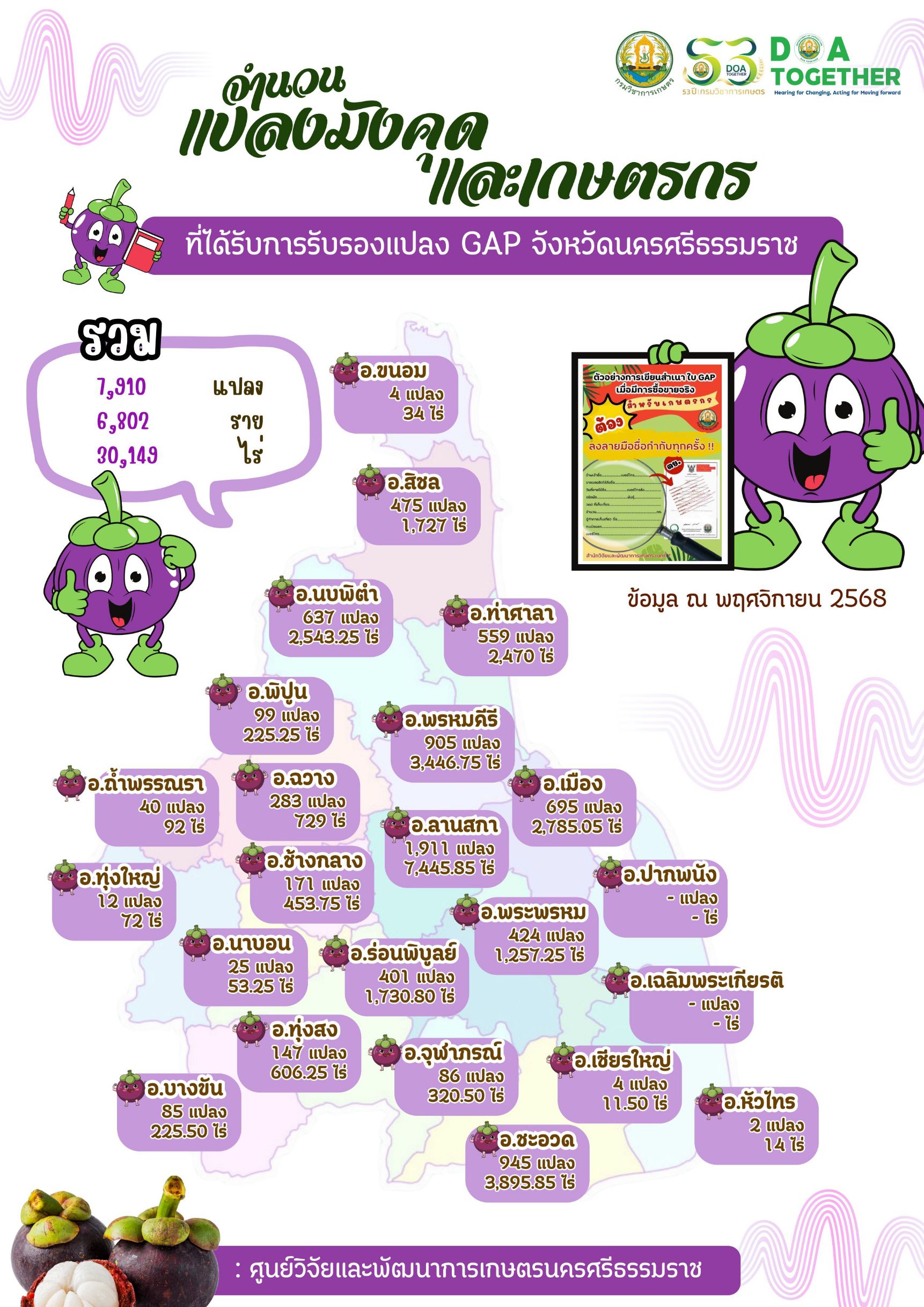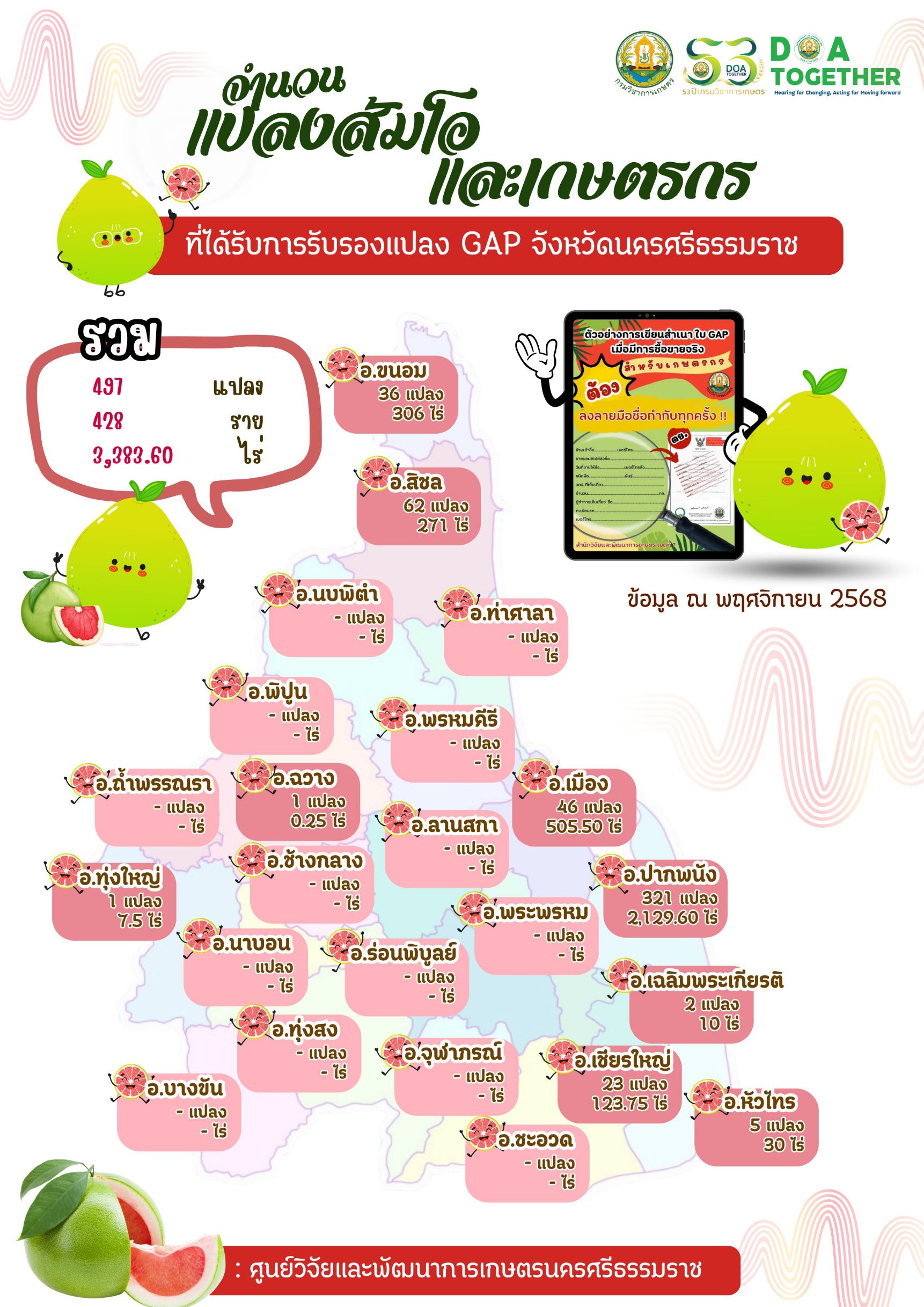 สรุปจำนวนสวนทุเรียน, มังคุด และส้มโอที่ได้รับการรับรอง GAP จังหวัดนครศรีธรรมราช