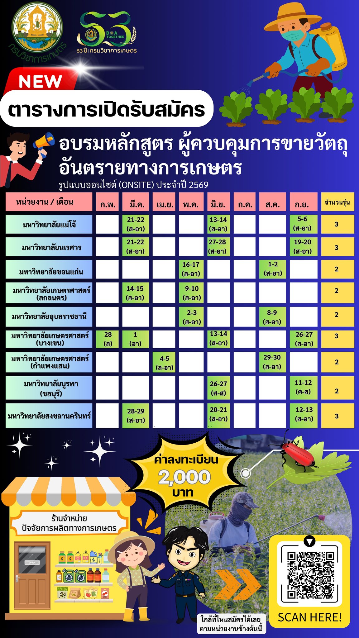 แผนการฝึกอบรม หลักสูตรผู้ควบคุมการขายวัตถุอันตรายทางการเกษตร ปี 2569 แบบออนไซต์ (On-site)