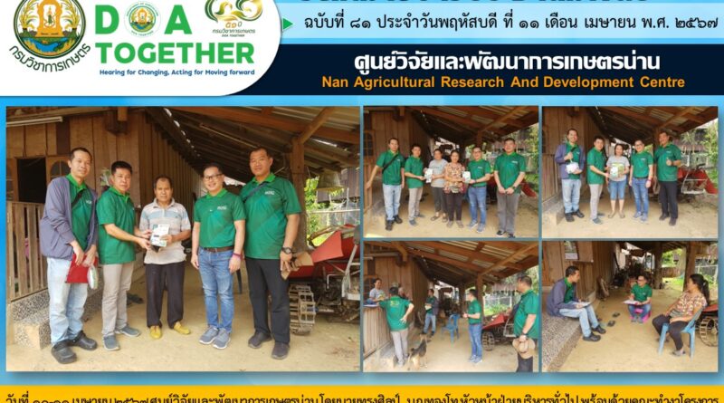 กลุ่มบริการวิชาการกลุ่มบริหารงานทั่วไปข่าวประชาสัมพันธ์ 7 พฤษภาคม 2567 adminnan วันที่ 3 พฤษภาคม 2567 ศูนย์วิจัยและพัฒนาการเกษตรน่าน โดย นายรณกิจ มูลหล้า นายธนิกนันท์ กาวี นายวรวิทย์ ใบยา และนายจักรินทร์ หวันยอง นักวิชาการเกษตร พร้อมด้วยคณะทำงานโครงการศูนย์ภูฟ้าพัฒนาอันเนื่องมาจากพระราชดำริ ลงพื้นที่ติดตามฯ วันที่ 3 พฤษภาคม 256 Read More