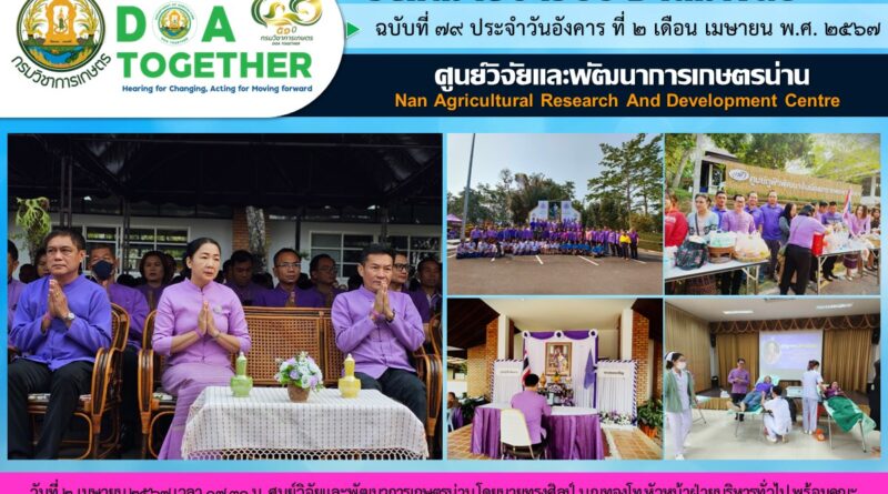 กลุ่มบริหารงานทั่วไปข่าวประชาสัมพันธ์ 2 เมษายน 2567 adminnan วันที่ 2 เมษายน 2567 เวลา 07.30 น. ศูนย์วิจัยและพัฒนาการเกษตรน่าน โดยนายทรงศิลป์ บุญทองโท หัวหน้าฝ่ายบริหารทั่วไป พร้อมคณะ ร่วมกิจกรรมเทิดพระเกียรติ สมเด็จพระกนิษฐาธิราชเจ้า กรมสมเด็จพระเทพรัตนราชสุดาฯ สยามบรมราชกุมารีฯ วันที่ 2 เมษายน 2567 Read More