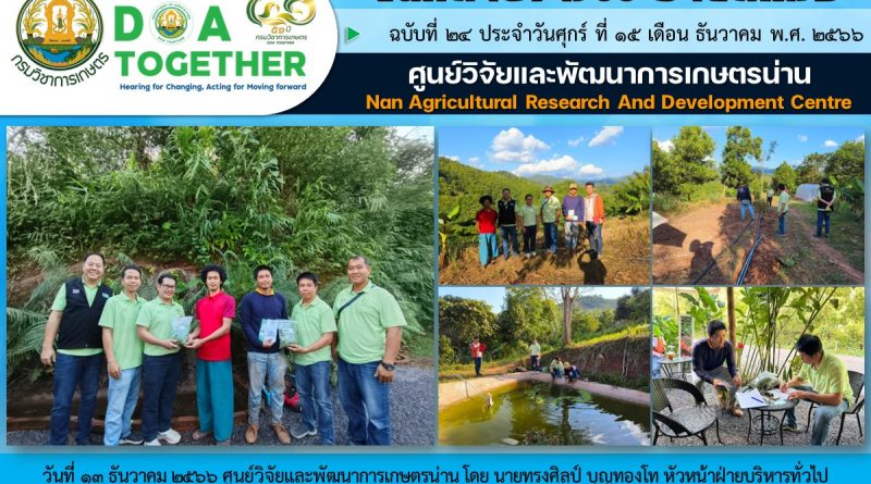 กลุ่มบริหารงานทั่วไปข่าวประชาสัมพันธ์ 15 ธันวาคม 2566 adminnan วันที่ 13 ธันวาคม 2566 ศูนย์วิจัยและพัฒนาการเกษตรน่าน โดยนายทรงศิลป์ บุญทองโท หัวหน้าฝ่ายบริหารทั่วไป พร้อมคณะทำงานโครงการอันเนื่องมาจากพระราชดำริ ลงพื้นที่ประสานงานเกษตรกร เก็บข้อมูลด้านการผลิตพืชฯ วันที่ 13 ธันวาคม 25 Read More
