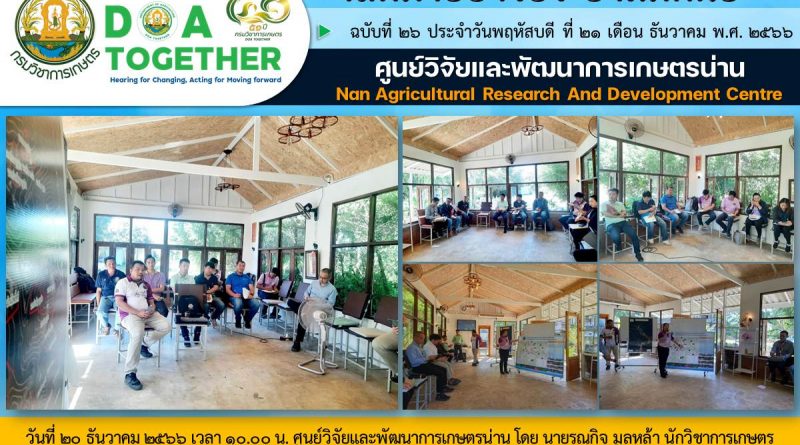 กลุ่มบริหารงานทั่วไปข่าวประชาสัมพันธ์ 21 ธันวาคม 2566 adminnan วันที่ 20 ธันวาคม 2566 เวลา 10.00 น. ศูนย์วิจัยและพัฒนาการเกษตรน่าน โดย นายรณกิจ มูลหล้า นักวิชาการเกษตร เข้าร่วมประชุมคณะทำงานปฏิบัติงานด้านการส่งเสริมและขยายผลการดำเนินงานโครงการศูนย์ภูฟ้าพัฒนาฯ วันที่ 20 ธันวาคม 25 Read More