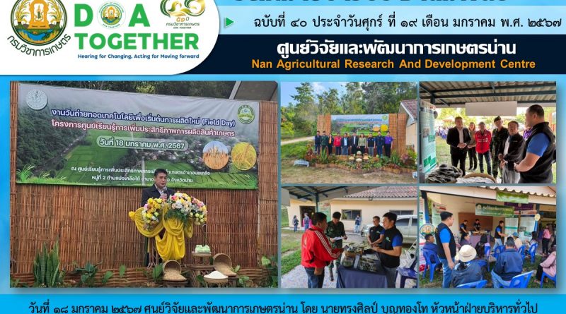 กลุ่มบริหารงานทั่วไปข่าวประชาสัมพันธ์ 19 มกราคม 2567 adminnan วันที่ 18 มกราคม 2567 ศูนย์วิจัยและพัฒนาการเกษตรน่าน โดยนายทรงศิลป์ บุญทองโท หัวหน้าฝ่ายบริหารทั่วไป พร้อมด้วยคณะ ร่วมงานวันถ่ายทอดเทคโนโลยี เพื่อเริ่มต้นฤดูกาลผลิตใหม่ (Field Day) ปี 2567 ฯ วันที่ 18 มกราคม 256 Read More