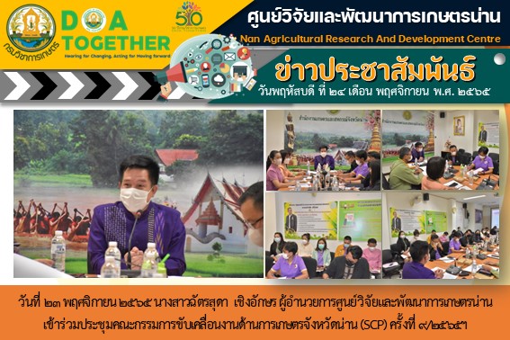 กลุ่มบริหารงานทั่วไปข่าวประชาสัมพันธ์ 28 พฤศจิกายน 2565 adminnan วันที่ 23 พฤศจิกายน 2565 นางสาวฉัตรสุดา เชิงอักษร ผู้อำนวยการศูนย์วิจัยและพัฒนาการเกษตรน่าน เข้าร่วมประชุมคณะกรรมการขับเคลื่อนงานด้านการเกษตรจังหวัดน่าน (SCP) ครั้งที่ 9/2565 ฯ วันที่ 23 พฤศจิกายน Read More