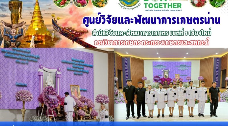 กลุ่มบริการวิชาการกลุ่มบริหารงานทั่วไปกลุ่มวิจัยและพัฒนาข่าวประชาสัมพันธ์ 25 พฤศจิกายน 2568 adminnan วันที่ 25 พฤศจิกายน 2568 ศูนย์วิจัยและพัฒนาการเกษตรน่าน เข้าร่วมกิจกรรมพิธีถวายราชสักการะ ครบรอบ 100 ปี วันคล้ายวันสวรรคต รัชกาลที่ 6 และเฉลิมพระเกียรติครบ 100 ปี วันประสูติ เจ้าฟ้าเพชรรัตนราชสุดา สิริโสภาพัณณวดี ฯ วันที่ 25 พฤศจิกายน Read More