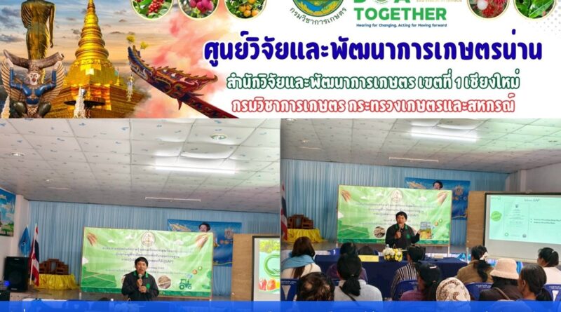 วันที่ 14 มกราคม พ.ศ. 2569 งานตรวจรับรองแหล่งผลิตพืช GAP และพืชอินทรีย์ กลุ่มบริการวิชาการ ศูนย์วิจัยและพัฒนาการเกษตรน่าน ร่วมเป็นวิทยากรถ่ายทอดความรู้ เรื่อง การขอรับรองมาตรฐานการปฏิบัติทางการเกษตรที่ดี GAP ฯ