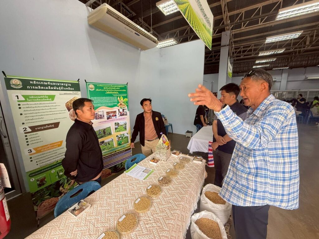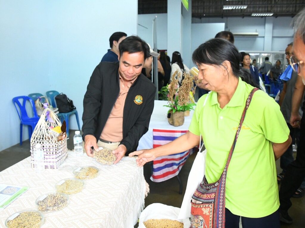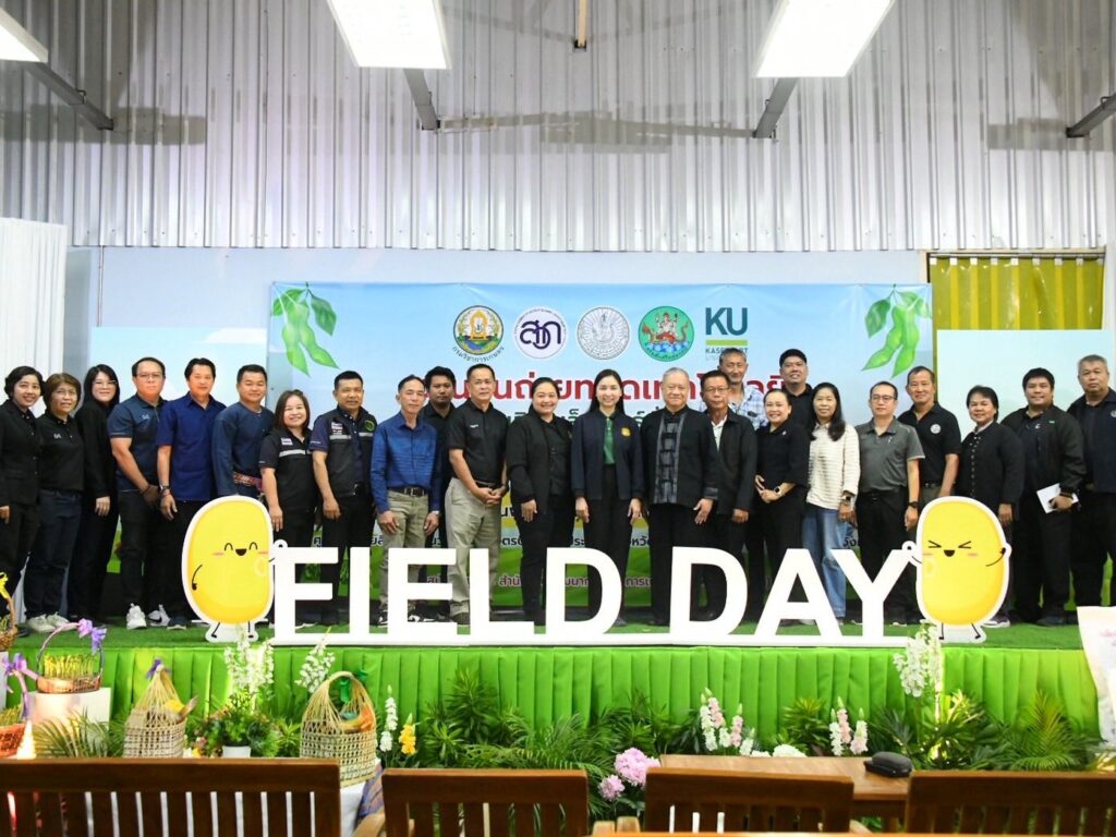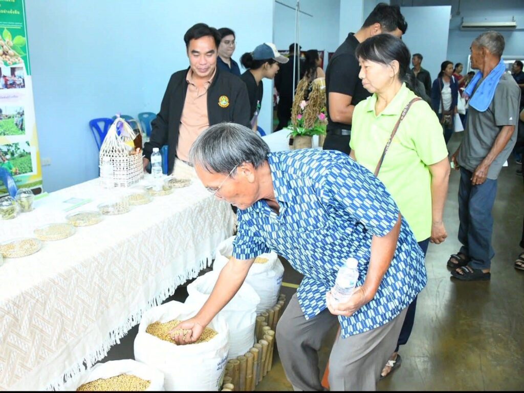 วันที่ 5 มีนาคม 2569 กลุ่มวิจัยและพัฒนา ศูนย์วิจัยและพัฒนาการเกษตรน่าน ร่วมจัดนิทรรศการงานวันถ่ายทอดเทคโนโลยีการผลิตเมล็ดพันธุ์ถั่วเหลือง โครงการผลิตเมล็ดพันธุ์พืชตระกูลถั่ว เพื่อเพิ่มศักยภาพการผลิตและยกระดับเศรษฐกิจชุมชนอย่างยั่งยืน ภายใต้โครงการขับเคลื่อนเทคโนโลยีพร้อมใช้ (Appropriate Technology) เพื่อถ่ายทอดและขยายผลเทคโนโลยีที่เหมาะสมในการผลิตเมล็ดพันธุ์ถั่วเหลืองชั้นพันธุ์จำหน่ายให้แก่เกษตรกรในเขตพื้นที่ภาคเหนือ ให้เกษตรกรนำเทคโนโลยีไปปรับใช้ในการเพิ่มประสิทธิภาพการผลิตทั้งด้านปริมาณและคุณภาพ สามารถส่งต่อเมล็ดพันธุ์คุณภาพดีภายในชุมชนของตนเองและพื้นที่ใกล้เคียงได้มากขึ้น ยกระดับคุณภาพชีวิตของเกษตรกร ส่งผลให้เกิดความมั่นคงและยั่งยืนทางด้านอาหารต่อไป โดยมี นางสาวเชาวนาถ พฤทธิเทพ ผู้เชี่ยวชาญด้านพืชไร่ตระกูลถั่ว ผู้อำนวยการกองวิจัยพัฒนาพืชเศรษฐกิจใหม่และการจัดการก๊าซเรือนกระจกสำหรับภาคเกษตร รักษาการในตำแหน่ง ผู้อำนวยการสำนักผู้เชี่ยวชาญ เป็นประธานในพิธี มีผู้เข้าร่วมกิจกรรมทั้งภาครัฐ ภาคเอกชน และกลุ่มเกษตรกร จำนวน 200 ราย ณ ศูนย์กระจายสินค้าด้านนวัตกรรมเกษตรปลอดภัย ประชารัฐ จังหวัดน่าน ตำบลถืมตอง อำเภอเมืองน่าน จังหวัดน่าน