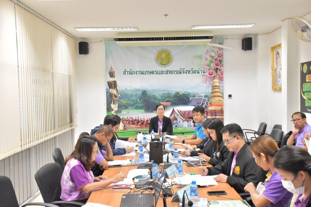 วันที่ 17 มกราคม 2567 ศูนย์วิจัยและพัฒนาการเกษตรน่าน โดยนายทรงศิลป์ บุญทองโท หัวหน้าฝ่ายบริหารทั่วไป และนายวรวิทย์ ใบยา นักวิชาการเกษตร ร่วมประชุมแนวทางการขับเคลื่อนโครงการพัฒนาเกษตรกรรมยั่งยืน (เกษตรทฤษฎีใหม่) ประจำปีงบประมาณ พ.ศ. 2567 – 2570 เพื่อพิจารณาคัดเลือกเกษตรกรรายเดิม จำนวน 15 ราย และเกษตรกรรายใหม่ เข้าร่วมโครงการฯ จำนวน 7 ราย ประจำปีงบประมาณ พ.ศ. 2567 โดยมี นางสาวกนกอร แสงอรุณ เกษตรและสหกรณ์จังหวัดน่าน เป็นประธาน ณ ห้องประชุมสำนักงานเกษตรและสหกรณ์ จังหวัดน่าน ชั้น 4 ศาลากลางจังหวัดน่าน