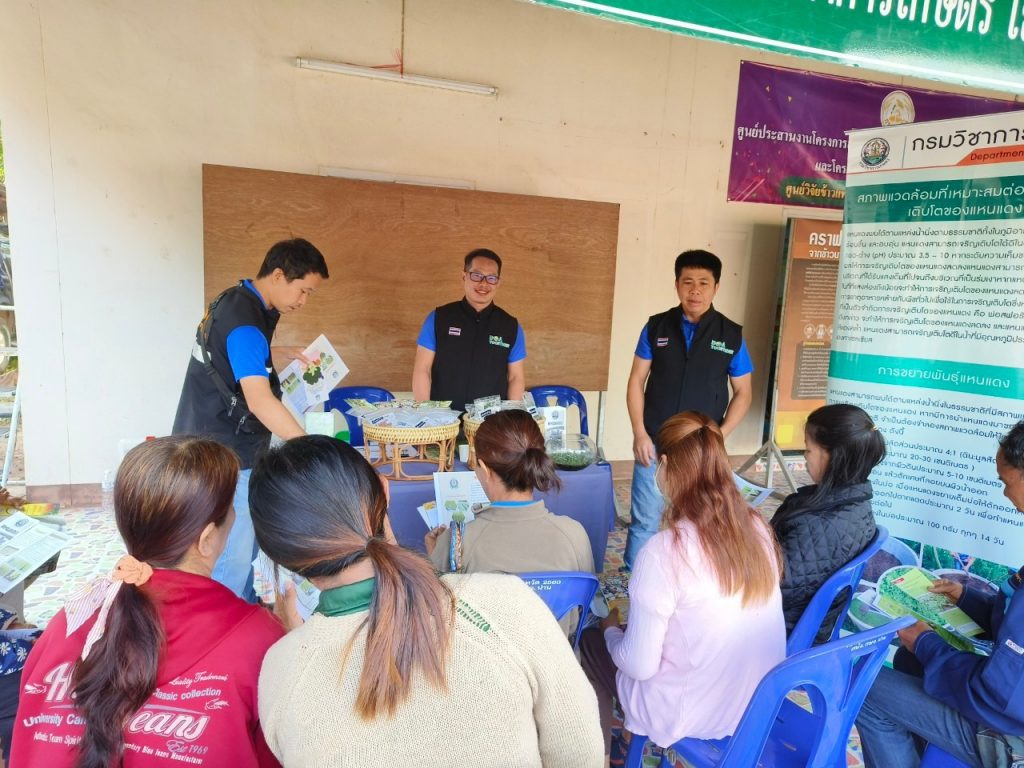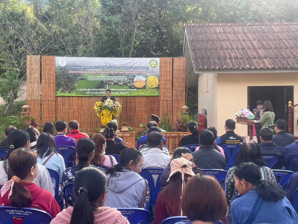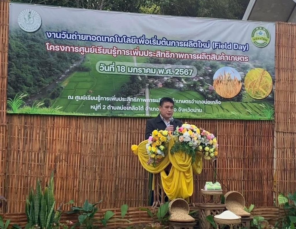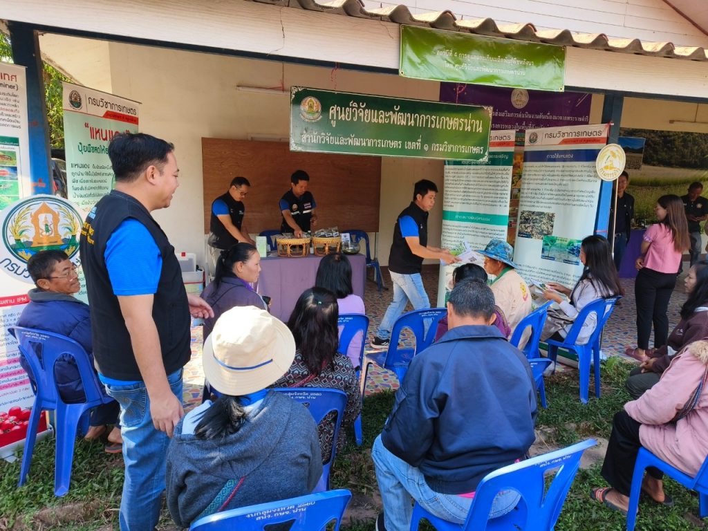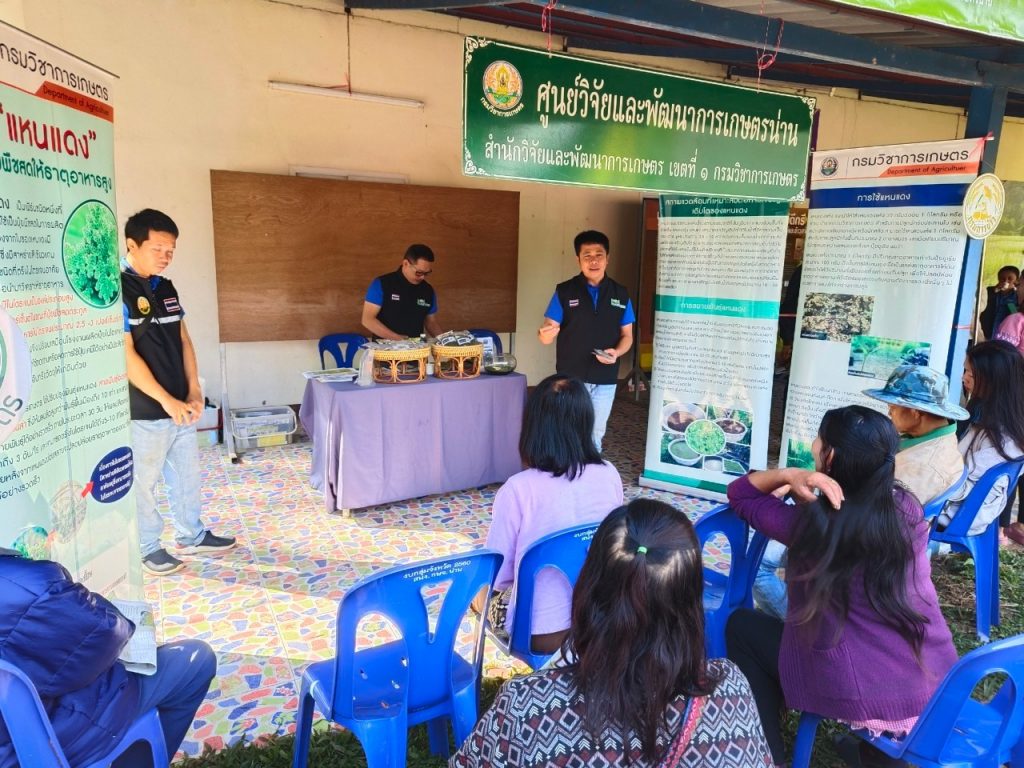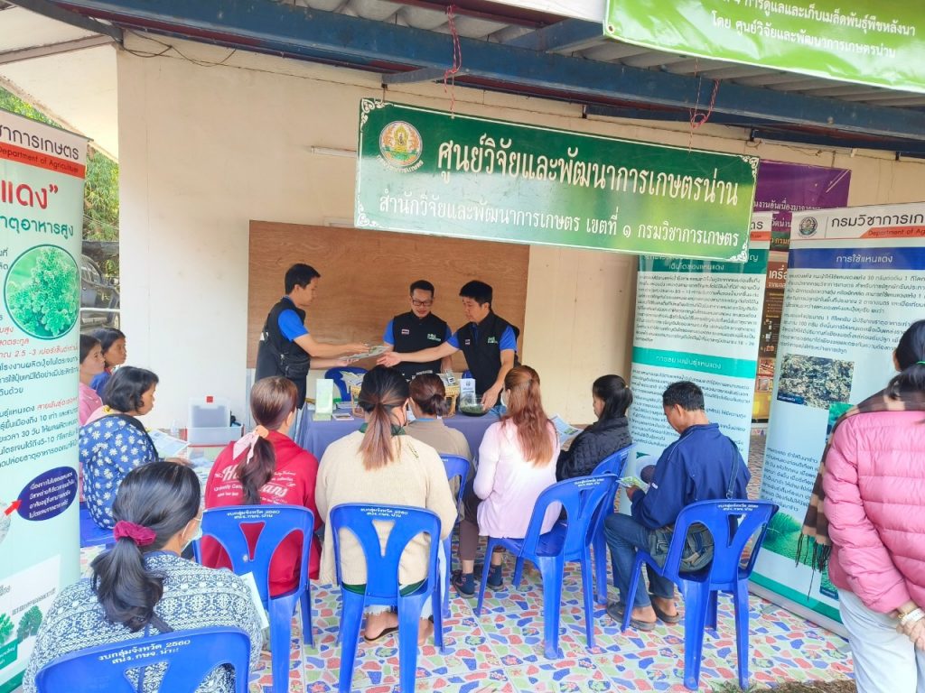 วันที่ 18 มกราคม 2567 ศูนย์วิจัยและพัฒนาการเกษตรน่าน โดย นายทรงศิลป์ บุญทองโท หัวหน้าฝ่ายบริหารทั่วไป พร้อมด้วยคณะ ร่วมงานวันถ่ายทอดเทคโนโลยี เพื่อเริ่มต้นฤดูกาลผลิตใหม่ (Field Day) ปี 2567 โดยร่วมจัดนิทรรศการ ให้บริการวิชาการ และถ่ายทอดองค์ความรู้ด้านการดูแลพืชผักและการเก็บเมล็ดพันธุ์ (พืชหลังนา) และการใช้ประโยชน์ของแหนแดง มีเกษตรกรเข้าร่วมกิจกรรม จำนวน 40 ราย โดยมีนายวัชรา คำสูง ปลัดอำเภอ หัวหน้าฝ่ายงานทะเบียนและบัตร เป็นประธาน ณ ศูนย์เรียนรู้การเพิ่มประสิทธิภาพการผลิตสินค้าเกษตรอำเภอบ่อเกลือ ตำบลบ่อเกลือใต้ อำเภอบ่อเกลือ จังหวัดน่าน