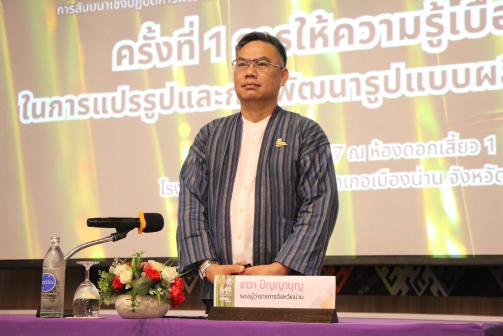 วันที่ 4 กรกฎาคม พ.ศ. 2567 นางสาวฉัตรสุดา เชิงอักษร ผู้อำนวยการศูนย์วิจัยและพัฒนาการเกษตรน่าน ร่วมพิธีเปิดการสัมมนาเชิงปฏิบัติการพัฒนาขีดความสามารถในการแข่งขันของผู้ประกอบการอุตสาหกรรมไผ่ในจังหวัดน่าน โดยมี นายเทวา ปัญญาบุญ รองผู้ว่าราชการจังหวัดน่าน เป็นประธานในพิธี วัตถุประสงค์การจัดสัมมนา เพื่อพัฒนาศักยภาพผู้ประกอบการวิสาหกิจขนาดกลางและขนาดย่อม (SME) และวิสาหกิจชุมชนในกลุ่มอุตสาหกรรมไผ่จังหวัดน่าน ให้สามารถแข่งขันได้ในตลาดสากล และพัฒนาผลิตภัณฑ์อุตสาหกรรมไผ่จังหวัดน่าน ให้เกิดมูลค่าเพิ่มทางธุรกิจ ของผู้ประกอบการอุตสาหกรรมไผ่/วิสาหกิจชุมชนไผ่ในจังหวัดน่าน 30 ราย ณ ห้องดอกเสี้ยว 2 โรงแรมน่านตรึงใจ บูทีค อำเภอเมืองน่าน จังหวัดน่าน