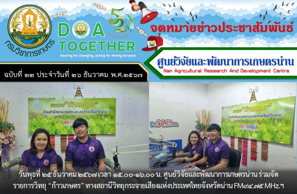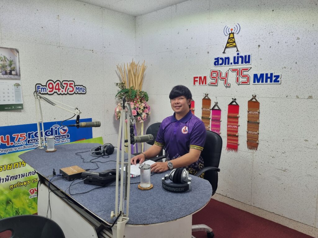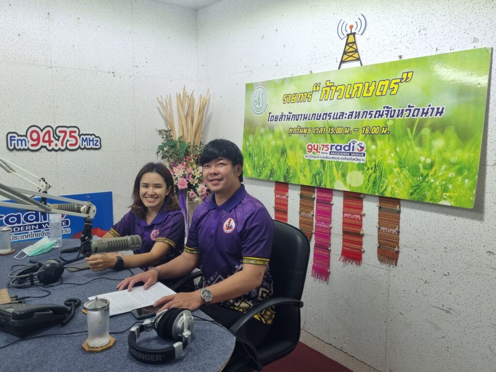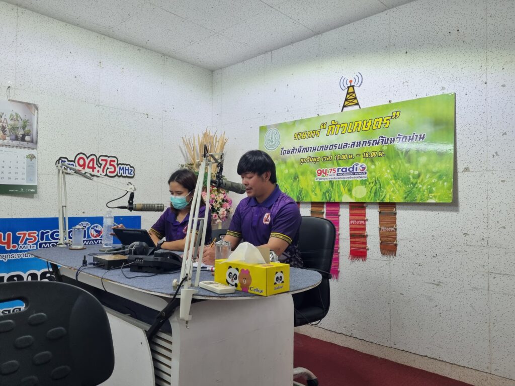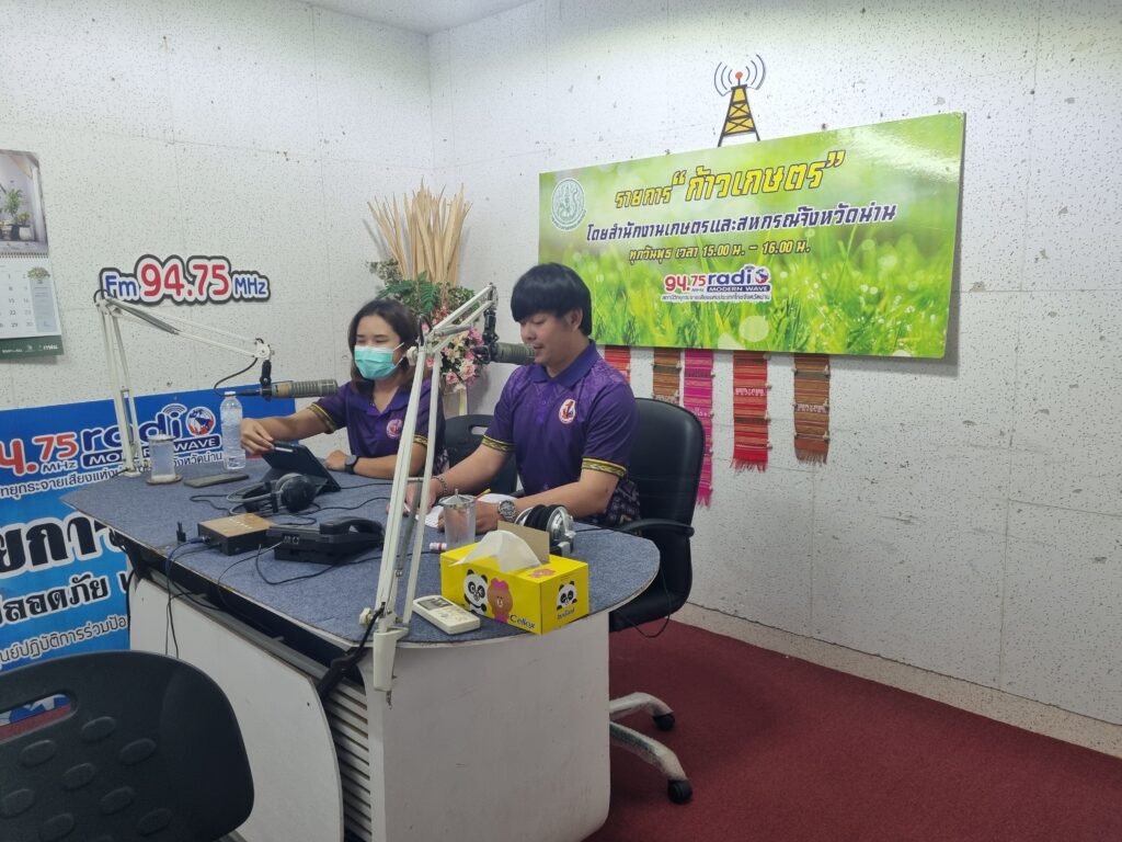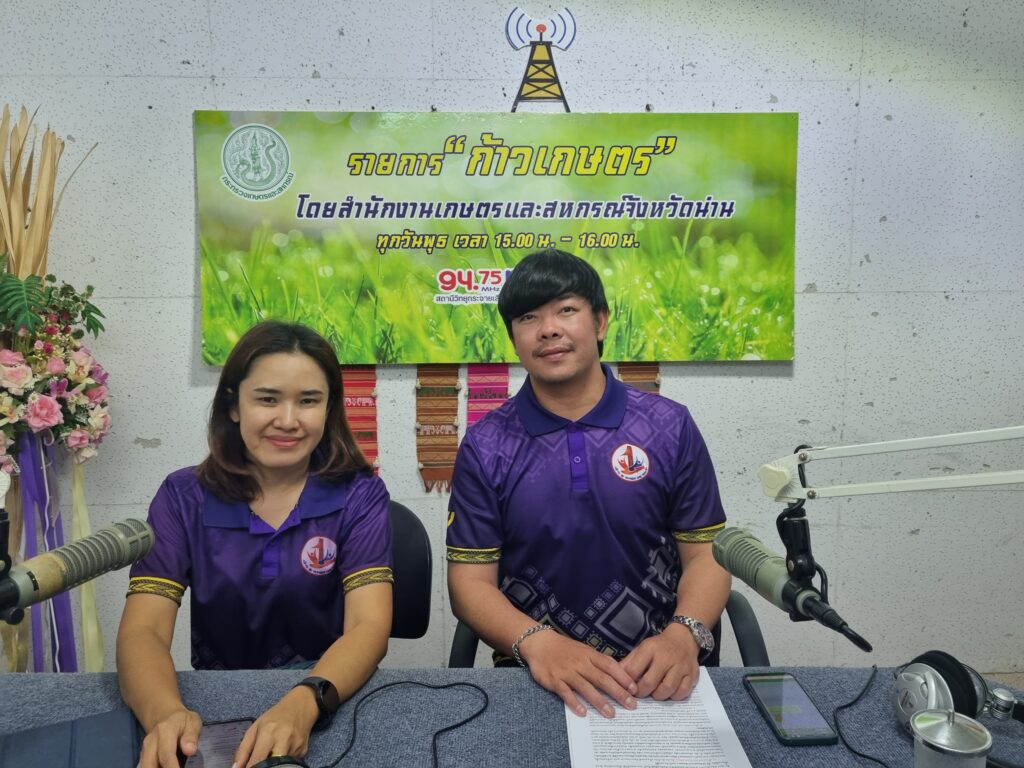 วันพุธที่ 25 ธันวาคม 2567 เวลา 15.00-16.00 น. ศูนย์วิจัยและพัฒนาการเกษตรน่าน ร่วมจัดรายการวิทยุ “ก้าวเกษตร” ทางสถานีวิทยุกระจายเสียงแห่งประเทศไทยจังหวัดน่าน FM94.75 MHz. ดำเนินรายการโดย นางสาวมณีรัตน์ ดาราช หัวหน้ากลุ่มสารสนเทศการเกษตร สำนักงานเกษตรและสหกรณ์จังหวัดน่าน เพื่อประชาสัมพันธ์ เรื่องการใช้ชีวภัณฑ์ควบคุมศัตรูพืชผัก ณ สถานีวิทยุกระจายเสียงแห่งประเทศไทยจังหวัดน่าน