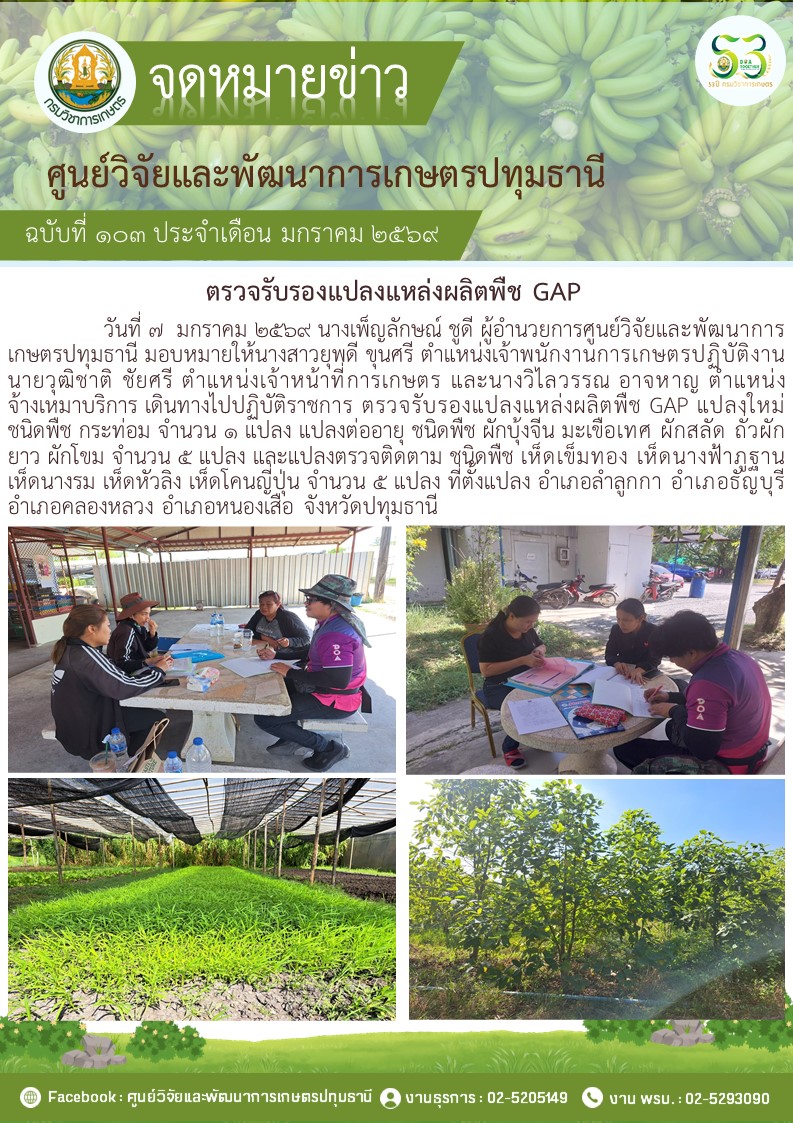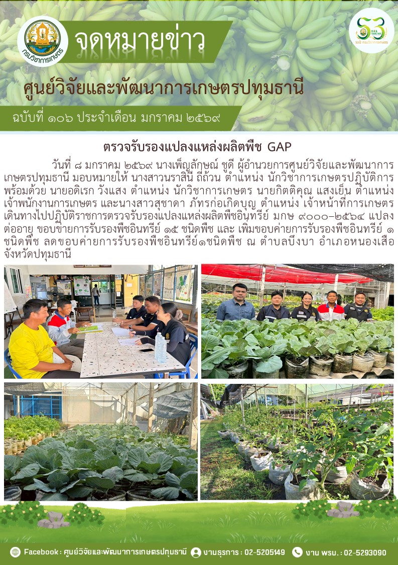 ตรวจรับรองแปลงแหล่งผลิตพืช GAP แปลงใหม่