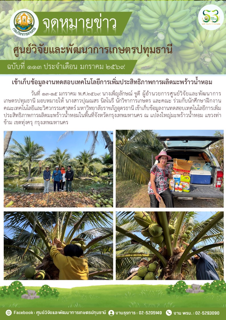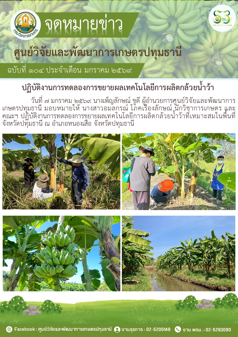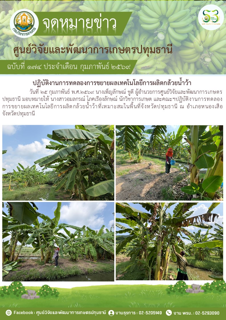 ปฏิบัติงานวิจัยการทดสอบเทคโนโลยีการผลิตกล้วยน้ำว้า